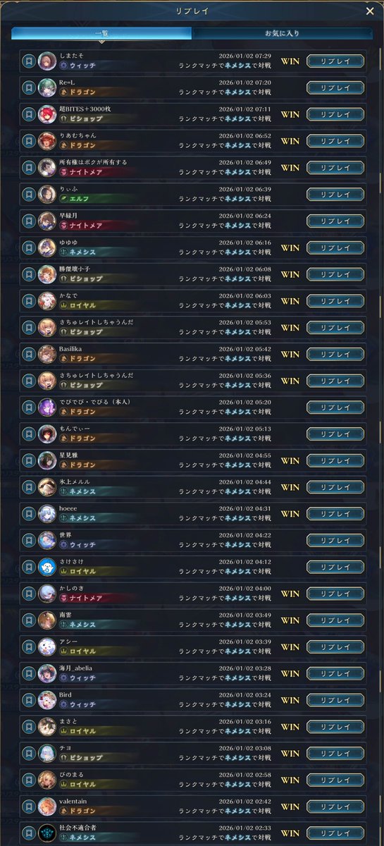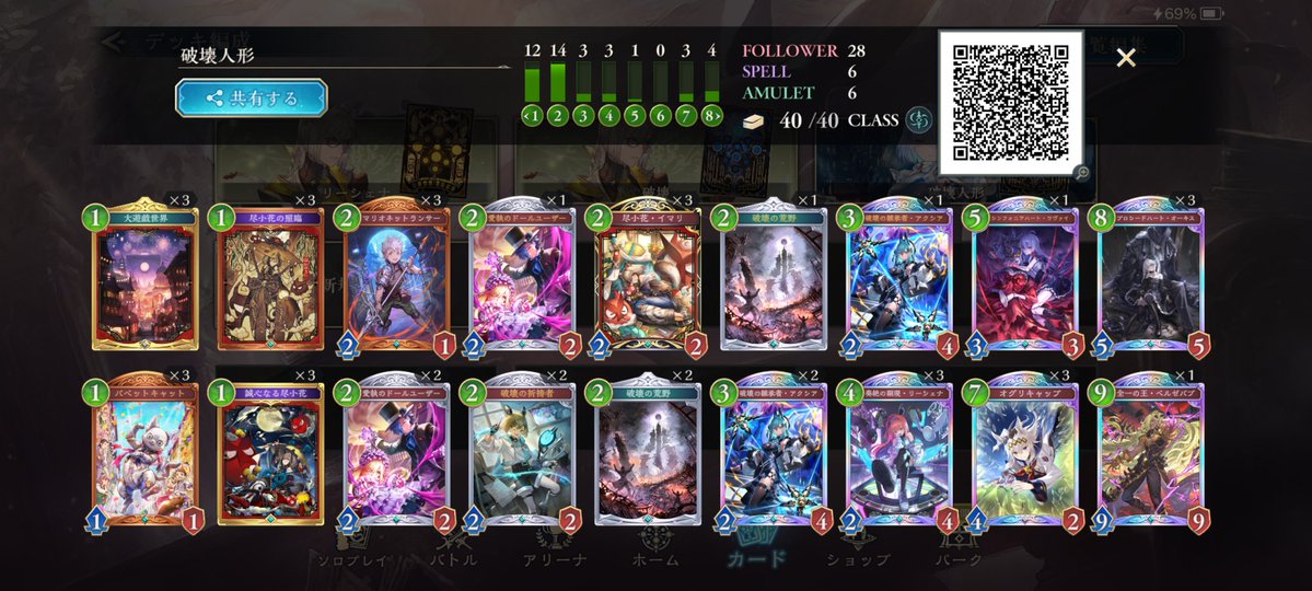 シャドバWB、昨日までのアグロから今度は進化軸のドラゴンに変えて遊んでた。デッキもプレイもなかなか定まらずしばらく負け越した後にだけど、8連勝できた✌️ イシュミールがイマリ、ツヴァイ、オルカいっぱい並べるやつ等あっさり返せていい感じ。pp最大値10での自動進化も助かる