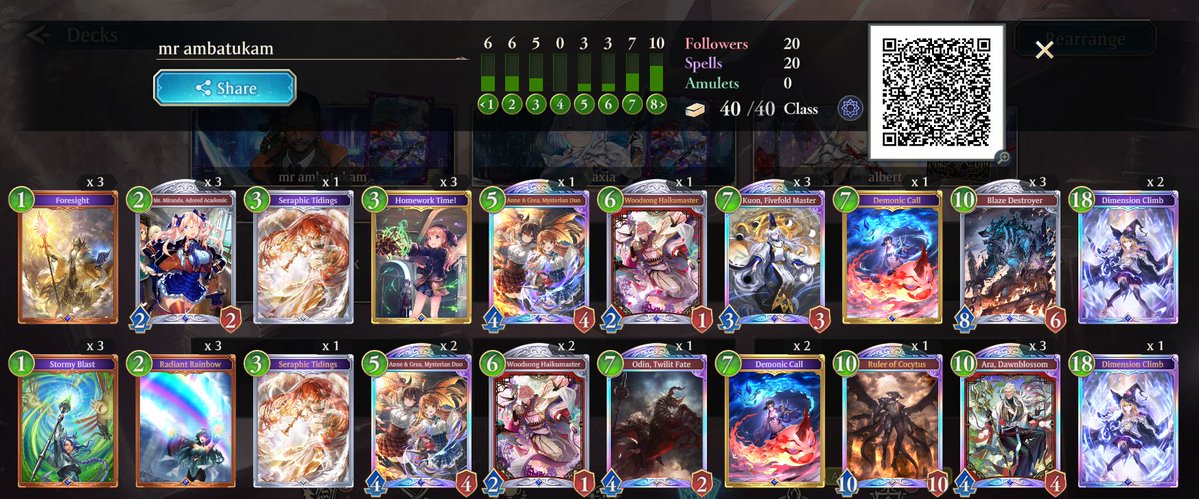 スペルウィッチで11連勝 序盤相手のアグロさえ凌げれば、中盤の面の押し付けと疾走で、簡単にリーサルとれた!! #シャドバ #シャドウバース #スペルウィッチ