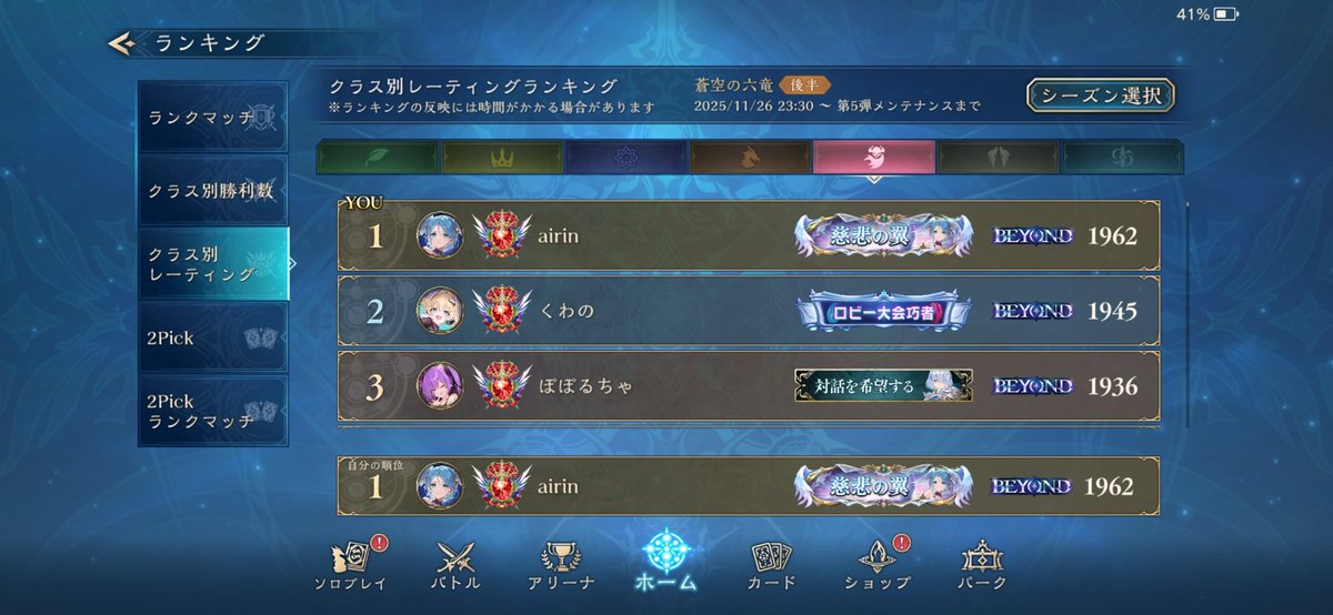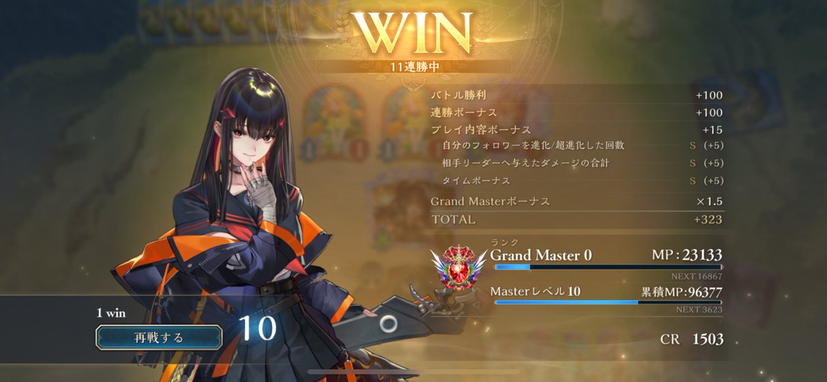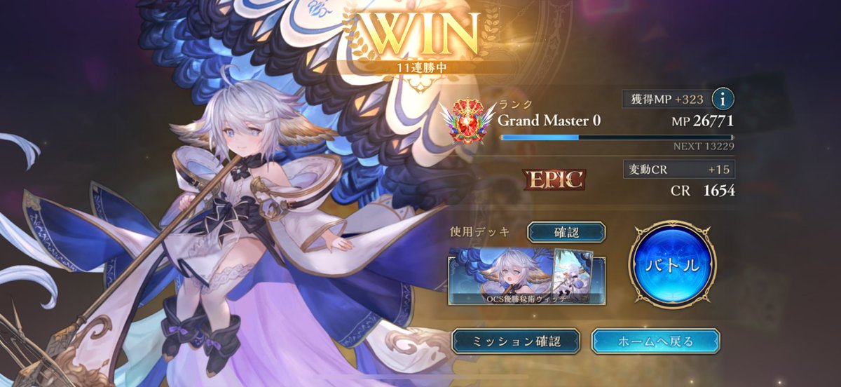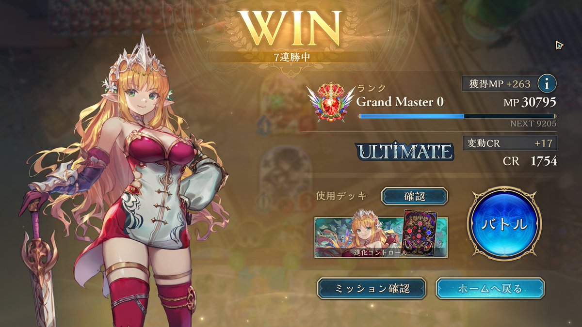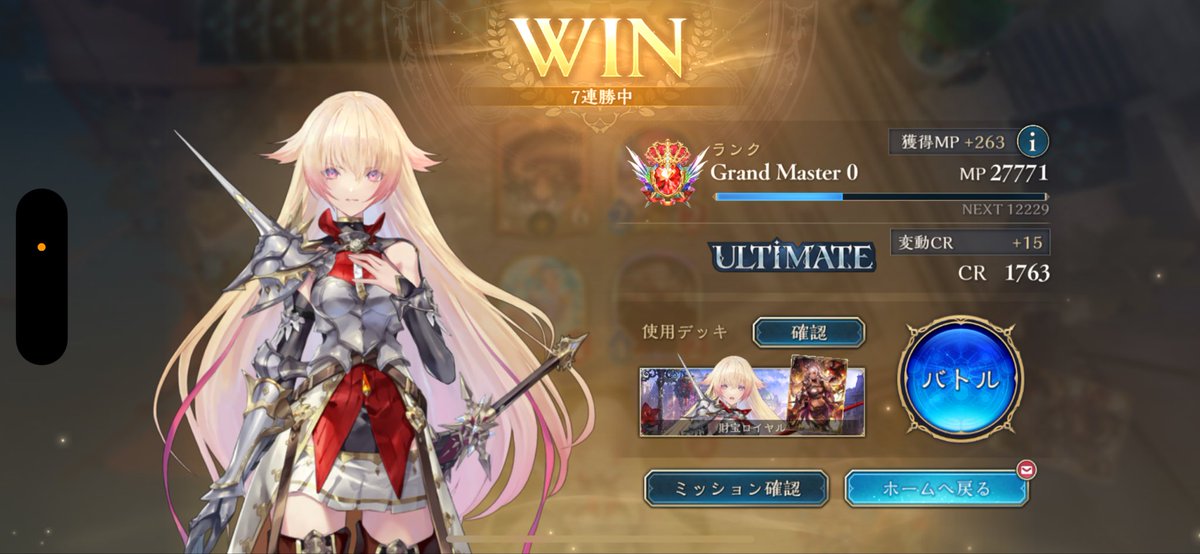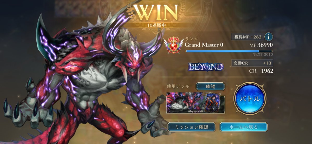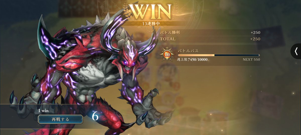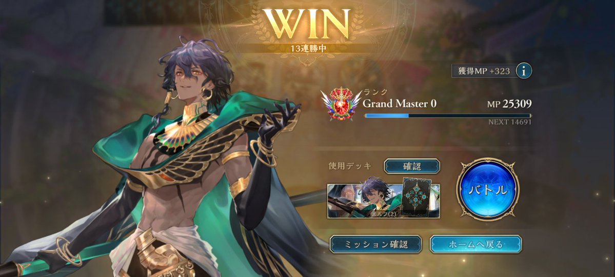 今日の仕事の休憩と通勤の時に13連勝かましたぜ! ミッドメアつええ! バザラガ盤面以外は圧&圧で後はバザラガ着地すりゃ勝てるやん! 今日はこの後嫁と晩酌会なのでシャドバはおしまい!