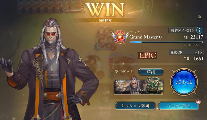 昨日一昨日は負け越してたけど、ちょっとデッキ変えて5連勝でEpicまで戻ってこれた疾走ランプドラゴン。(まだネプチューンは1度も使ってないけど、デッキの底から良いカード投げてくれてるかも)