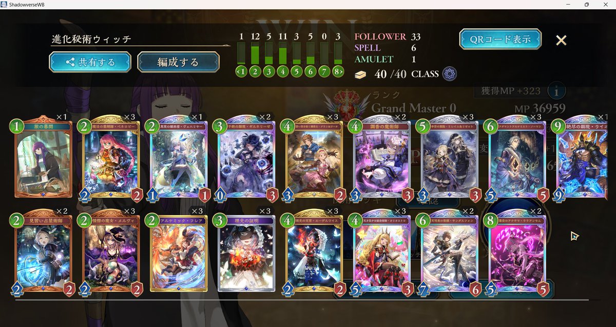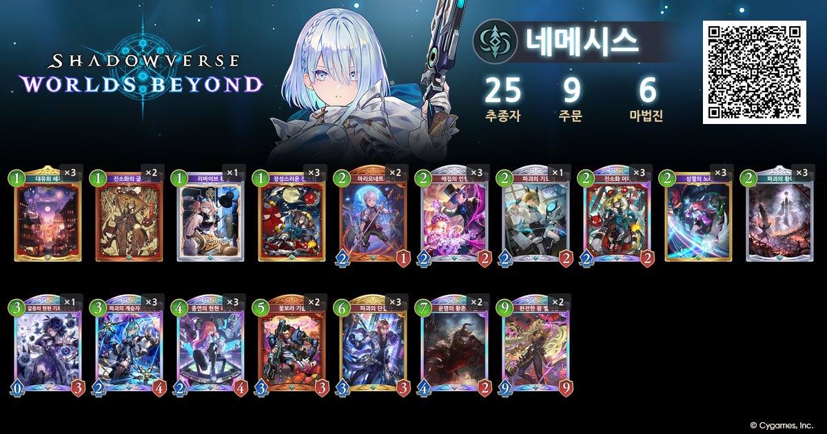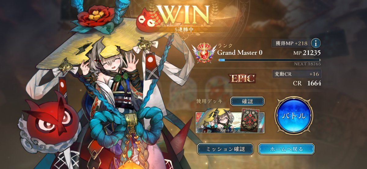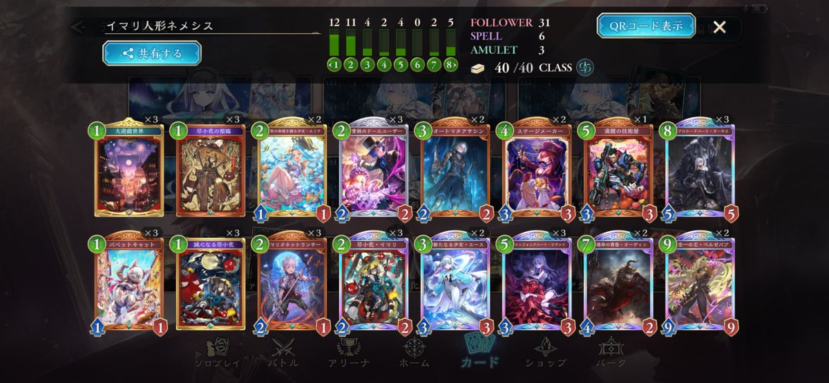 シャドウバースワールドビヨンド 人形ネメシスで15連勝 でもEPICです 最後フルランプのイランツァに脳天ぶち込まれました 試合早いからめっちゃラクです!