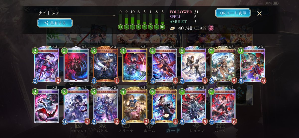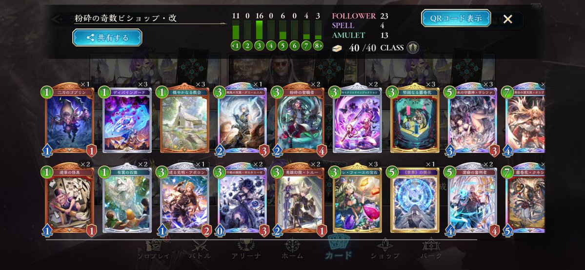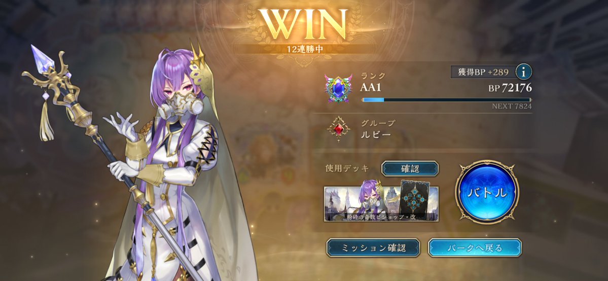 シャドバWB、ランクマ初12連勝〜‼︎ アプデでルビーに落ちてたから、あんまり見た目よくないけど、嬉しい!😆☀️ よくあるクキシロビショップの構築とは、14枚くらい違うかな。 相手が詰ませてくるのを回避できて、逆に詰ませられるから偉い!ソフィーナ待ってろよ〜😁