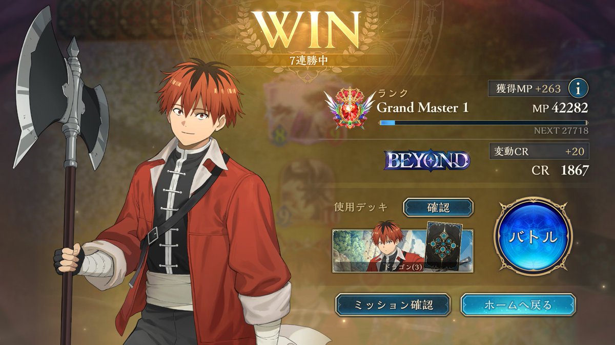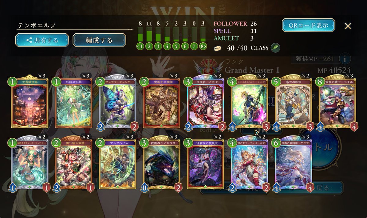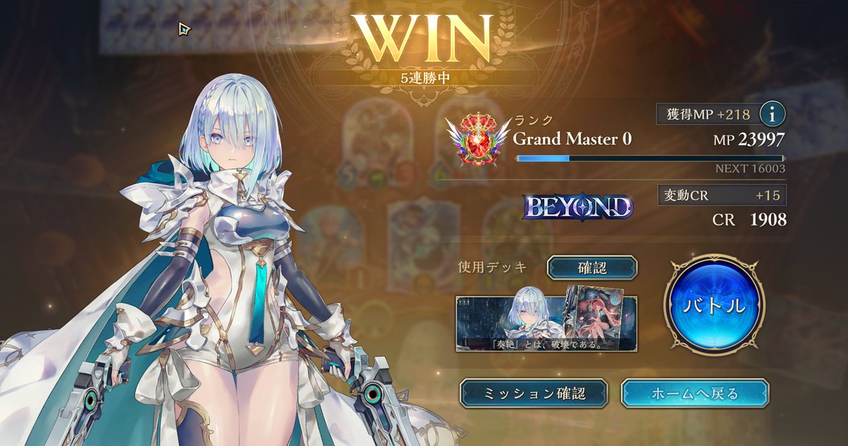 怒涛の8連勝でBEYOND達成! 守護進化クレストビショップかなりやれます! 有利対面: ・エルフ全般 ・クキシロビショップ ・ドラゴン全般 不利対面 ・破壊ネメシス(相手が団結者欠損してるなら、アイテールとイムーバブルパラディンの押し付けで勝てます) #シャドバビヨンド #シャドバWB #リグゼ