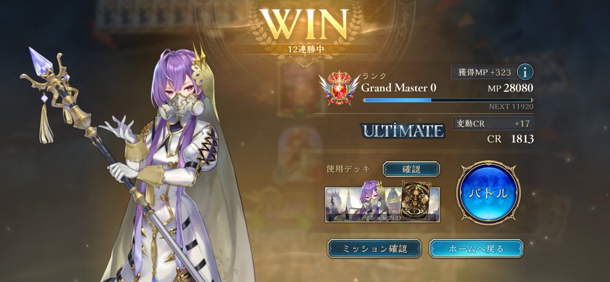 レートがレートなので何の参考にもならんのだけど CR1000付近まで落ちてから今の構成に変えたら 急に勝ちだして11連勝した やっぱアイボリードラゴンとネプチューンは要るな あとガルミーユもやっぱ必要だ ガルミーユいるだけでアグロへの耐性が段違いになる
