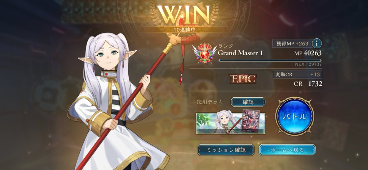 グラマス1を達成しながら進化エルフで10連勝! デッキは進化エルフ グラマス1へのラストスパートをお試しがてら突撃してみたけど…思った以上に強かったね! ドラゴンだけキツイけど、それ以外は案外受けきれるのも嬉しいところ ULTIMATEも現実的に見えてきた! リノ以外が強いのも嬉しいね!