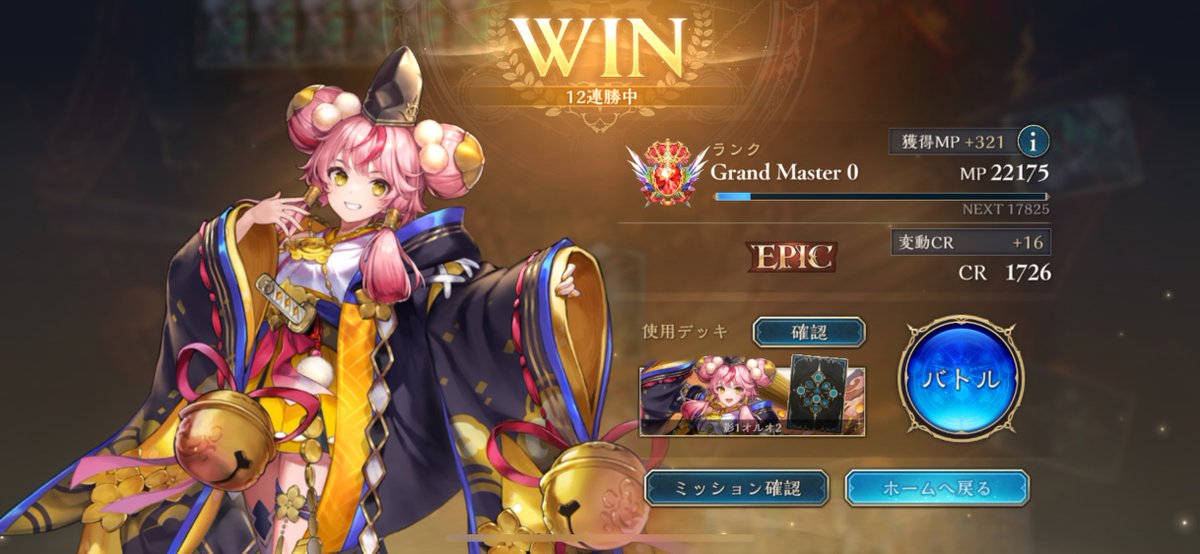 12連勝でCR2000でネクロ2位(*´ω`*) なおこのあとロビー大会でぼろ負けしました(。-∀-) まぁロックしてきた破壊ネメに捕食ギルネでわからせたので良し🐱 やっぱ環境が煮詰まってくると捕食かサンダルの奇襲強い #シャドバ連勝 #ShadowverseWB