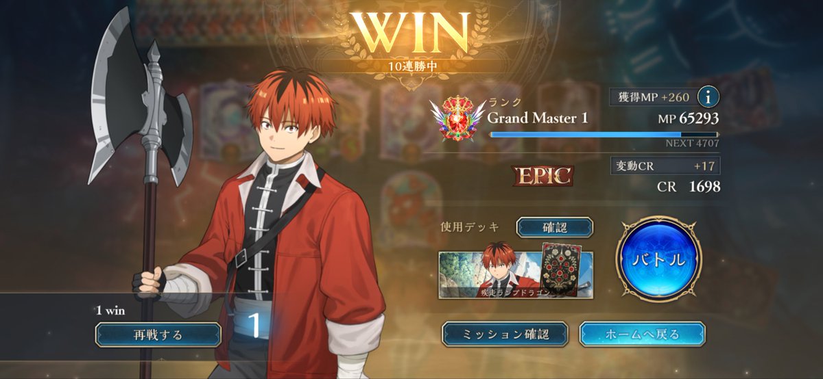 【シャドバWBの話】 疾走ランプドラゴンで10連勝できたー 7コス~9コスで処理だけになって顔つめれなくて失速するイメージあるのでアジュラフリート採用しようかなって思ったりしてる
