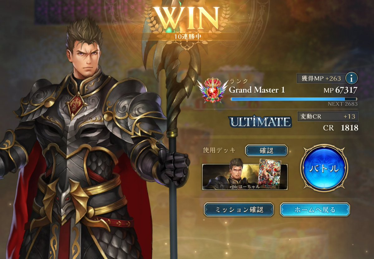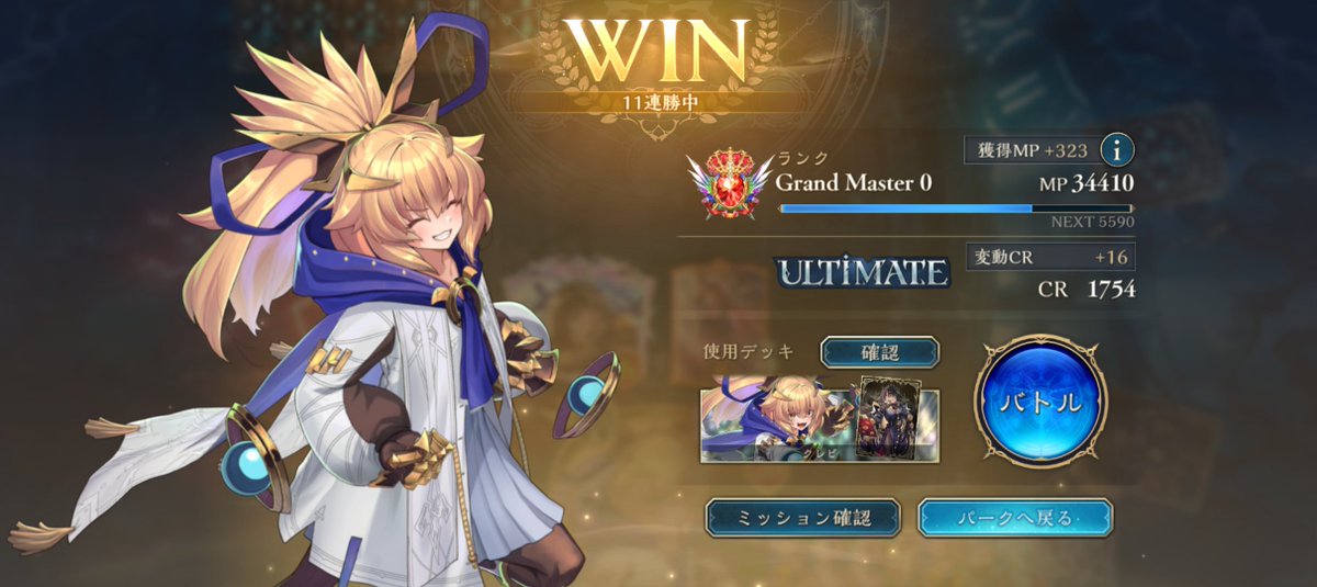 マゼルベイン入りクレビで10連勝&負け無しULTIMATE!! ミラーやりたくなくて雑に突っ込んだマゼルベインがドラゴン対面拾ってくれて気分良かった。勿論ミラーは大活躍。 (1勝はネメの分)
