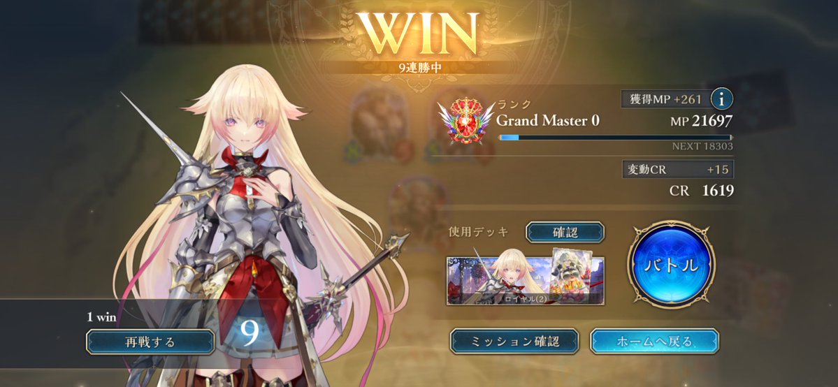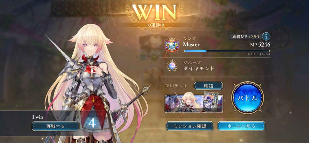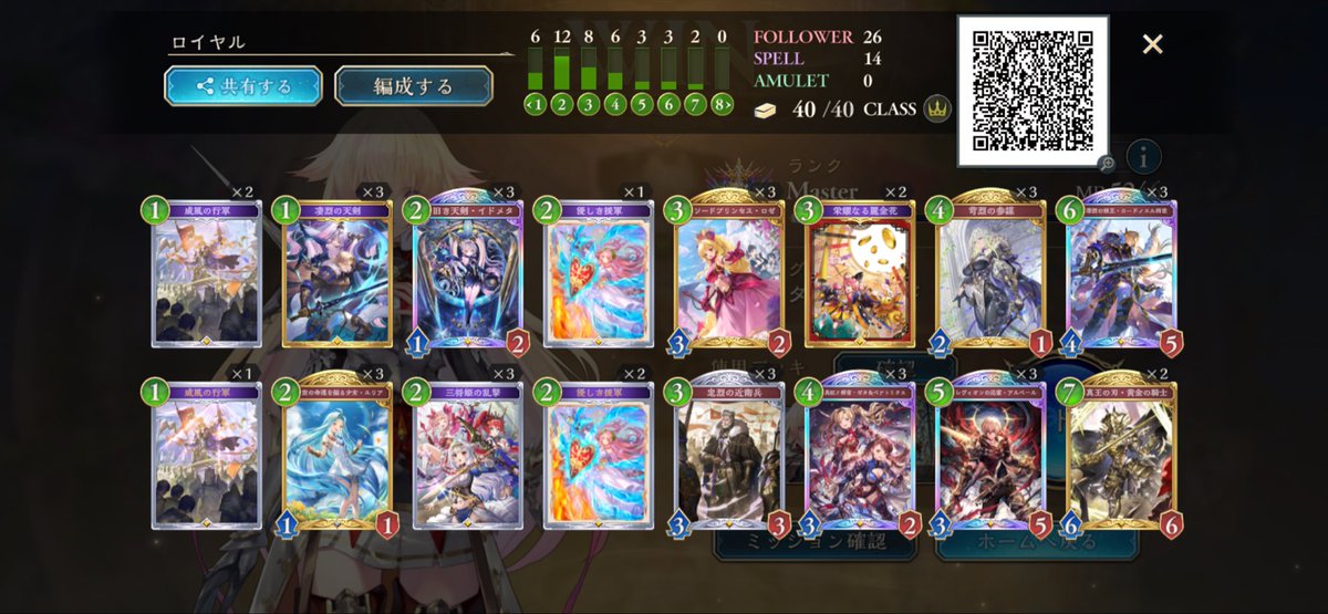エンハンスロイヤルでマスターダイヤ帯7連勝! 序盤しっかり受け切れればどのクラスにも強いの偉い ワンチャンユリウスの採用とかも面白そう #シャドバWB