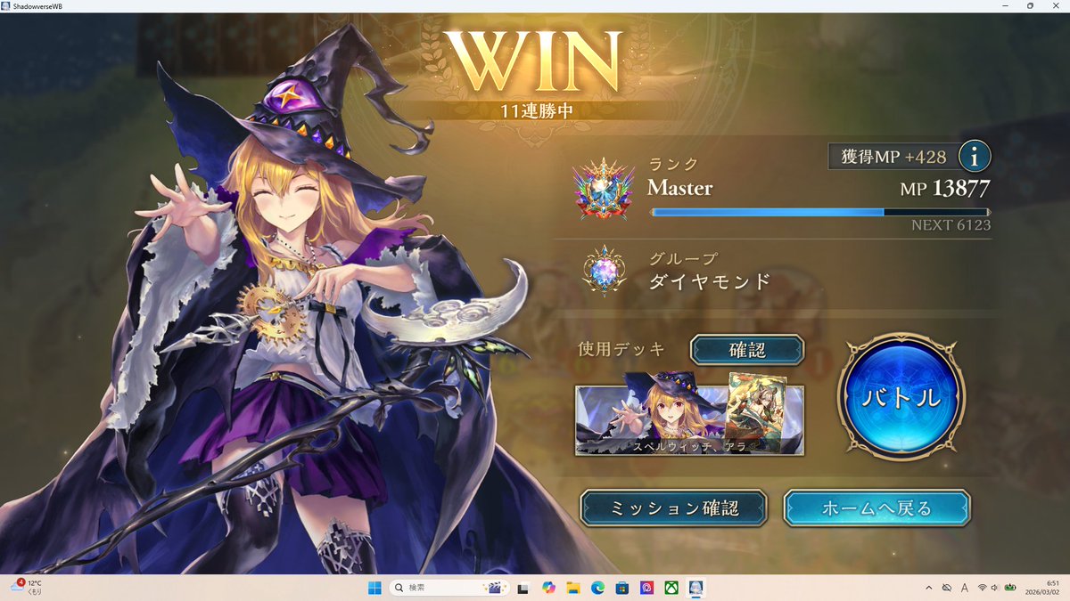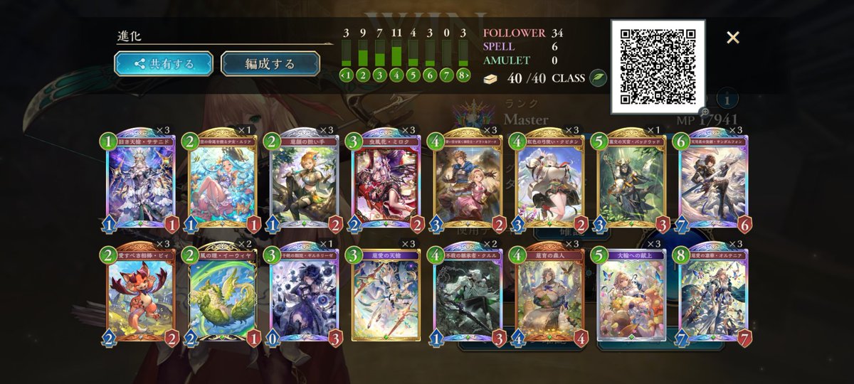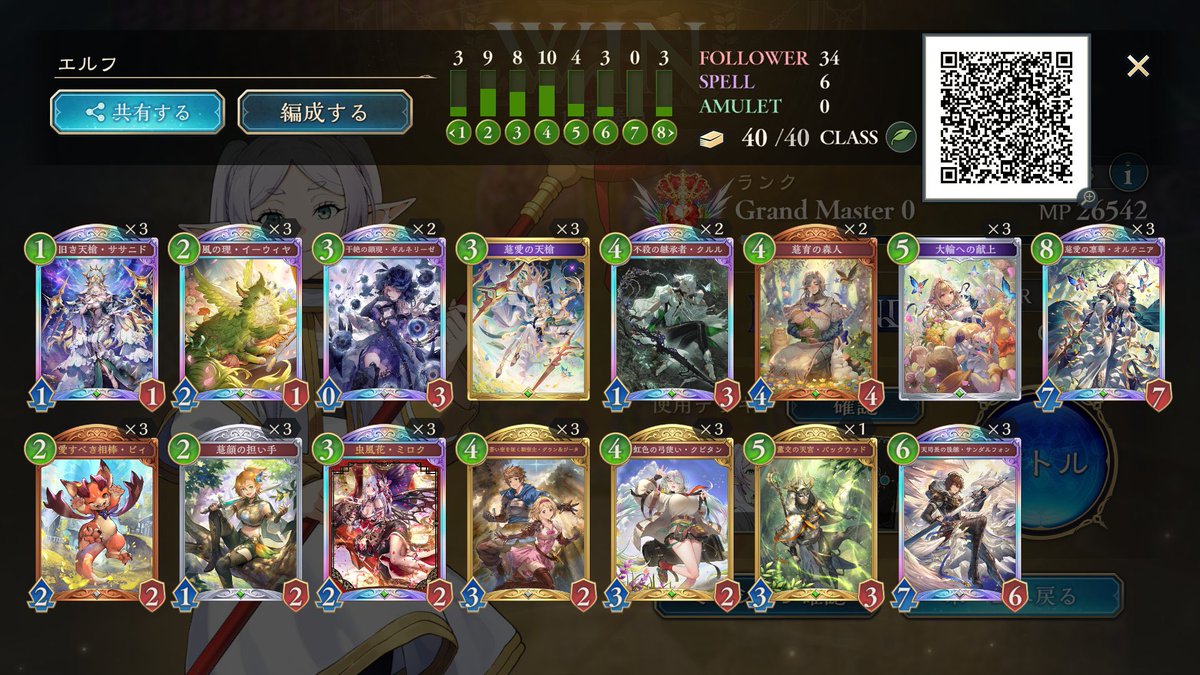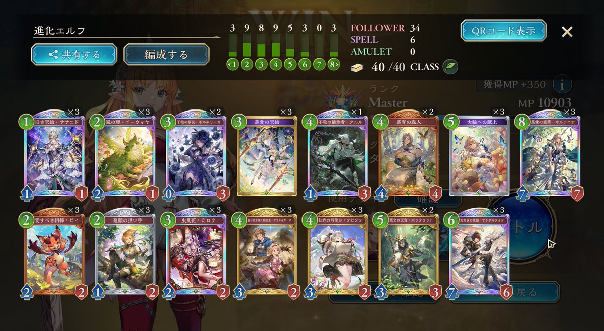 グラマス達成✨ ミルティオナイトメアが強すぎた… 負けるのは耐久された進化エルフぐらい アグロムーブで勝てるの気持ち良すぎでした^ ^ 連勝いっぱいできたのでぜひ使ってみてください😊 #しゃどば