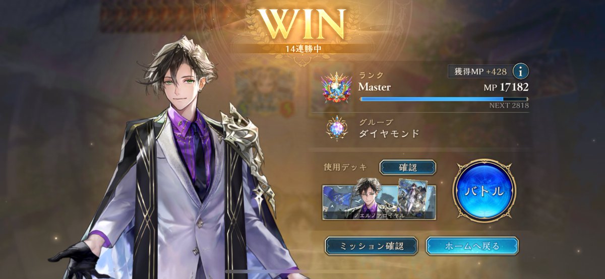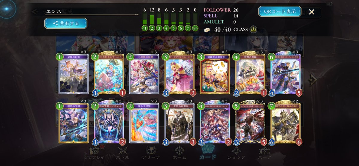 エンハンスロイヤル14連勝‼️ 一言で言えば再現性の鬼👹 これには絵心さんもびっくり🫢 リッターシュナイト長引いた試合に強かったり場残りするときに使えて結構よかった #シャドバWB #シャドバ