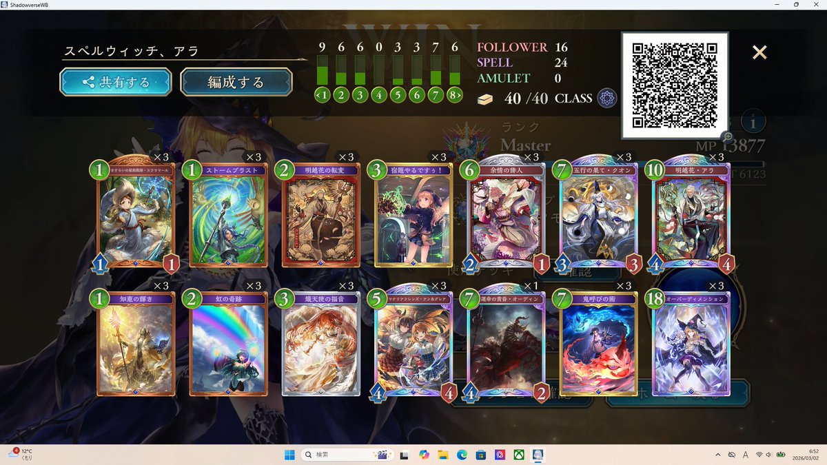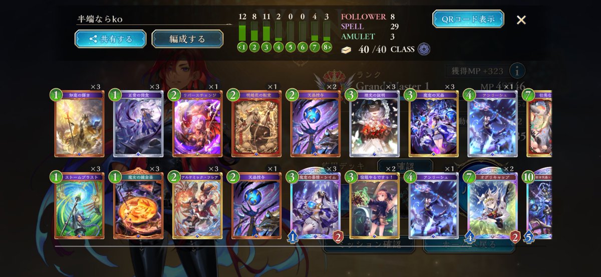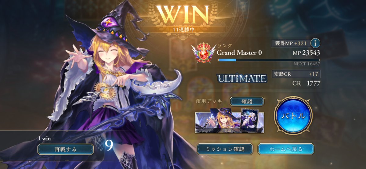 otk型の魔手ウィッチで11連勝 事故を減らすため転変1の成長2採用 明確に不利な対面が守護とDくらいで特に同型に対してマジレスできる点が回してて感触🙆
