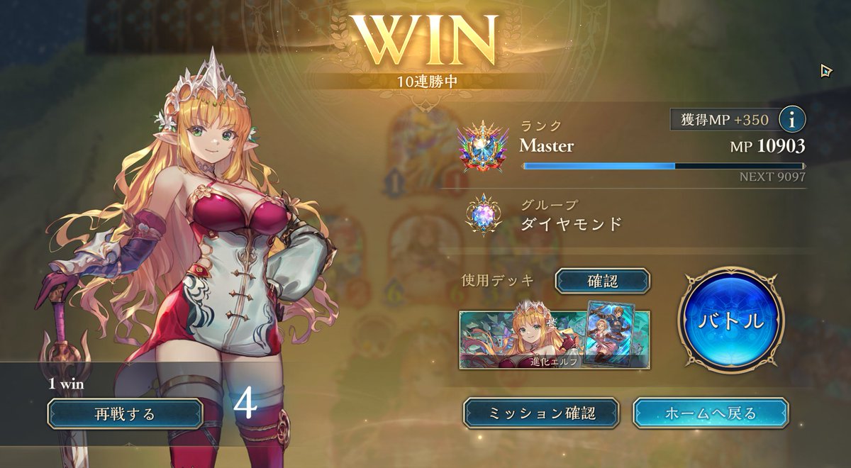 ダイヤ維持からのそのままグラマス 14連勝ディスカ (内訳エルフ4、ロイ3、ウィッチ1、ドラ2、ナイトメア2、ビショ1、ネメシス1)