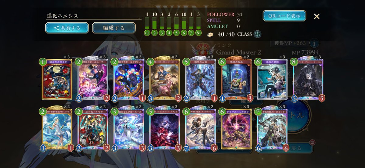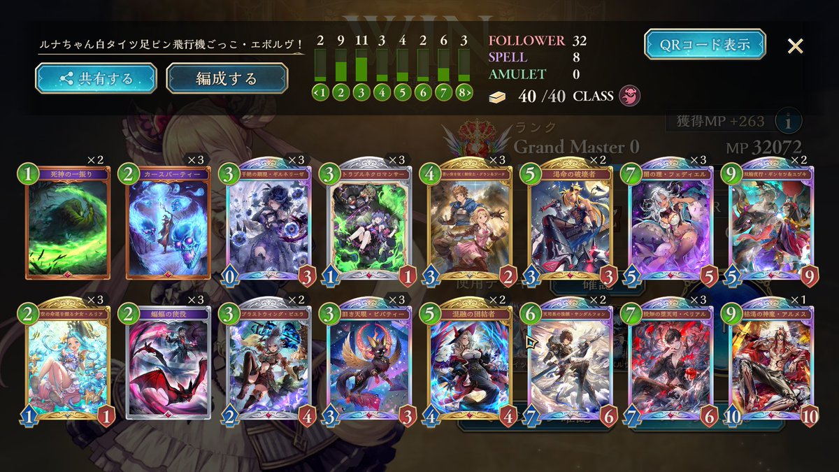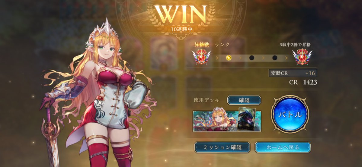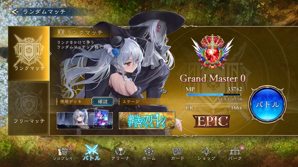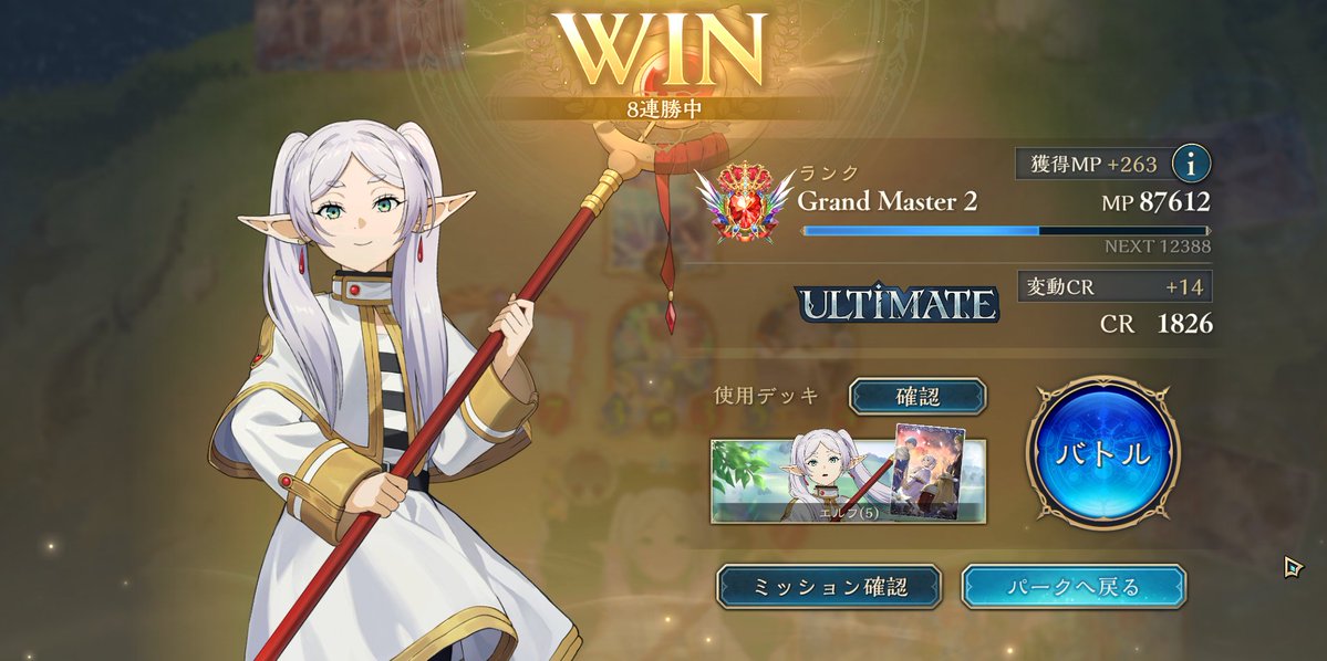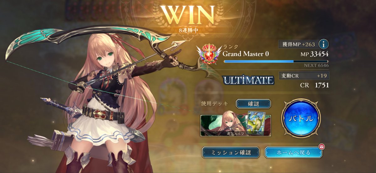 EPIC帯でウキウキしてたら連勝してULTIMATE行けた嬉しい😭😭😭 色んな方のデッキ参考にして自分の手に馴染んできた進化エルフ🌱 ちゃんと自分の納得できる成績が残せるようになったら、大会とかも参加してみたい…!