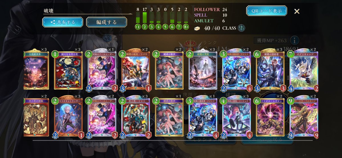 シャクドウで10連勝めっちゃうれしい... レート戦はシャクドウしか触ってなくてもう30時間ぐらいやってた まじで勝てないとき8連敗して吐きかけたけどいろんな構築試して廃棄して10連勝できてまじで泣きそう うおおおおおおおお #シャドウバース #シャクドウ