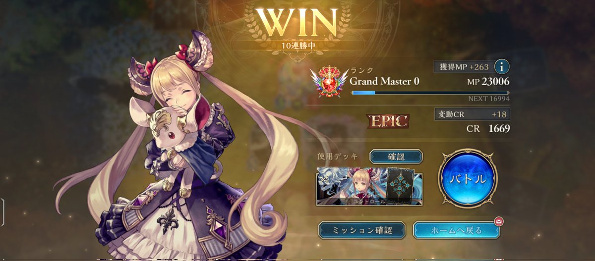 守護ビショップ 9連勝でBEYOND到達 流行りのOTK魔手ウィッチに強く出られて、かつ環境トップのミルティオNiにも勝ちやすいのが評価高め 崇奉の怯者のカードパワーが高すぎるおかげで、ウィルバートorアイテールのどちらかが欠損しても勝ち切れる試合が多いのが感触良かったです👏 #シャドバPS