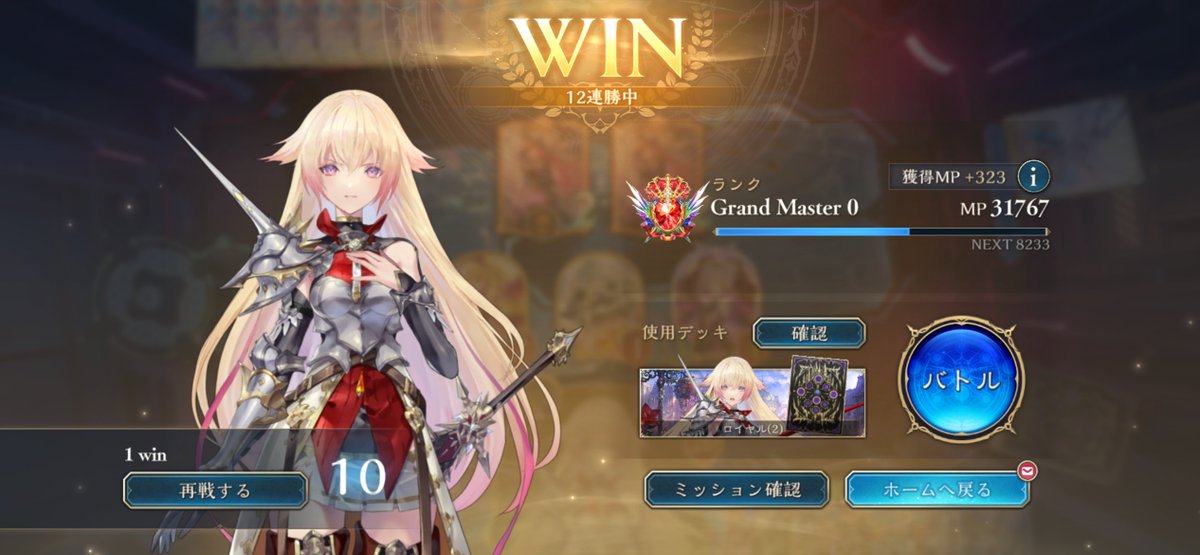 【Shadowverse WORLDS BEYOND】 日跨ぎだけど6連勝してようやくルビーにただいまできたwww🤣 クキシロが引けなかったおかげもあってかったなぁ(´・∀・`;)A とはいえヴィーラがめちゃくちゃ硬くて強いご様子www🤣👏👏👏素晴らしい♪ 聖地グリフォン超進化した瞬間に相手メンブレなってしまった💦