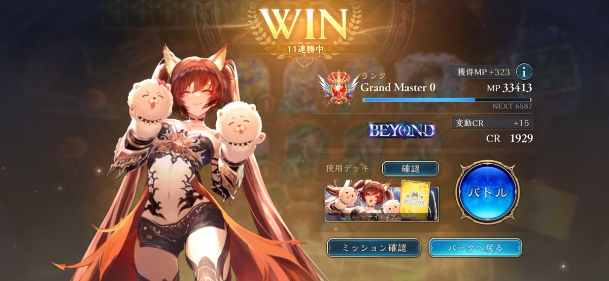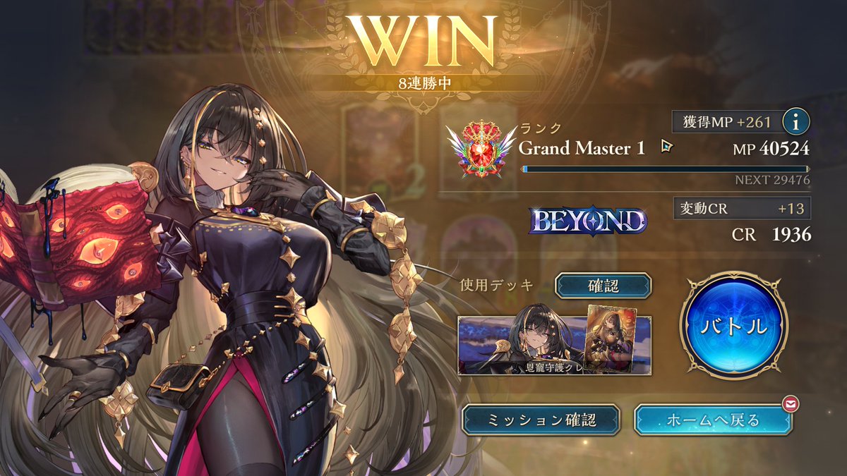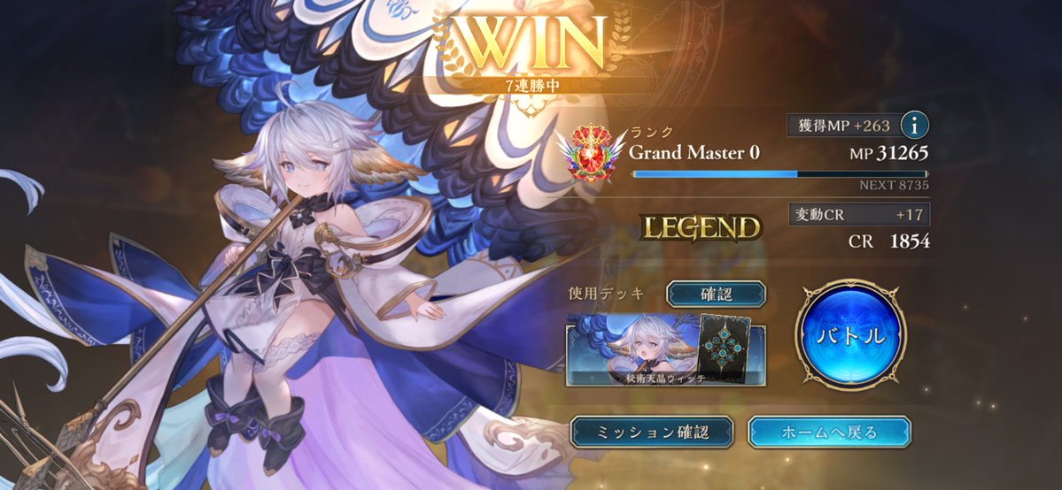 【Shadowverse WORLDS BEYOND】 今期個人最多連勝記録:7連勝樹立!!! 使用デッキ: クレスト軸守護疾走進化ビショップMk14 やっぱこれが1番楽しいーーー!!!! ((\(*゚▽゚*)♪/))✨ 後別の方もロビマで初お披露目したけど 面白かったww←こちらは別ポストで見せます(・`ω´)ゞ