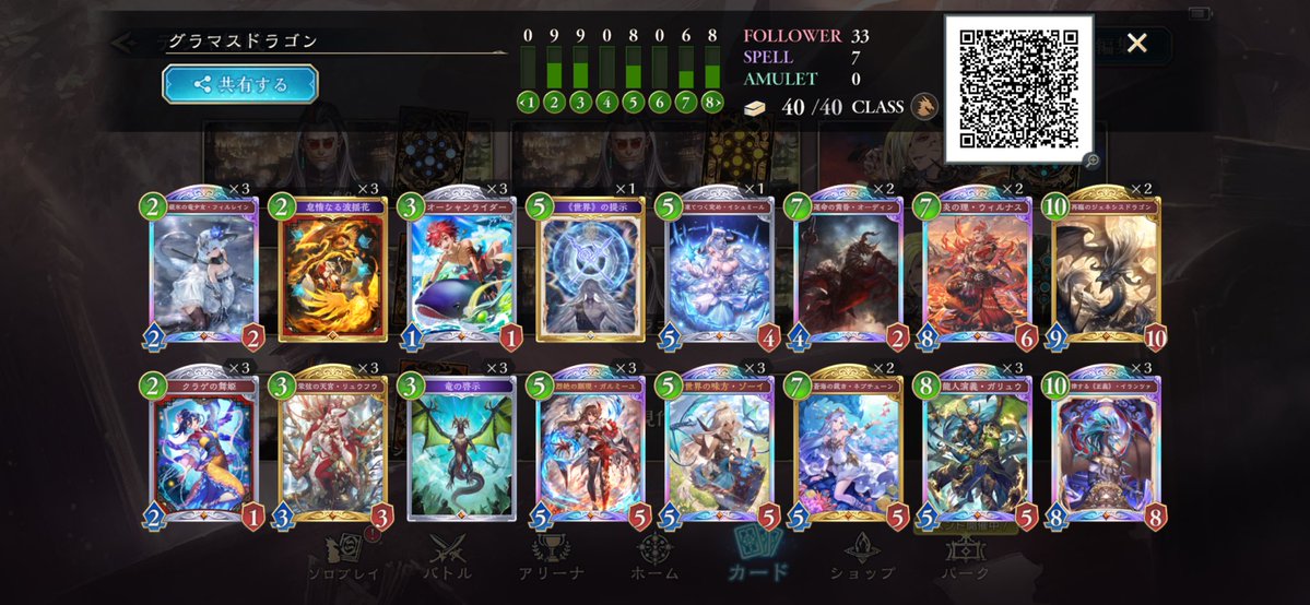 ドラゴン 5連勝 マゼルサタン あるのか? プロミネンスロア: 相手がフル盤面でも、4コスALL 5点 シュタルク(イランツァ): 基本回復役 進化しても、フィニッシュまではきついから勝ち√はOTKかな~ ほーちゃん1展開ルート: (絶対条件)サタン5コス ・2マゼル+2石版 or 3石版 ・4マゼル 1ターン耐え