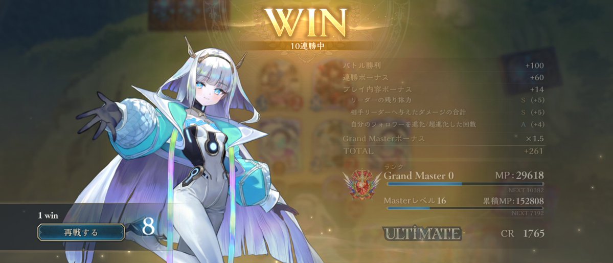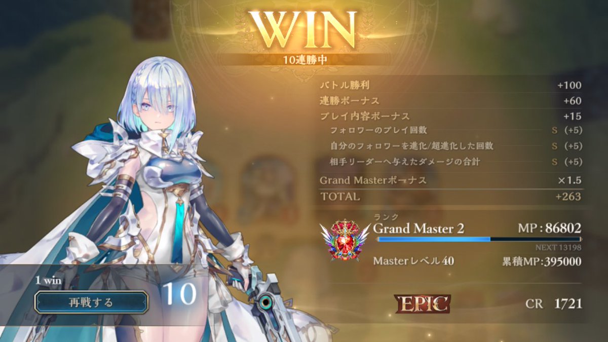 ビヨンド帯で10連勝中。 ギルネリーゼ2枚入れたら安定感バク上がり! 下手くそでもこんだけ勝てるから上手い人使えばもっと勝てそう。良かったらどうぞ #シャドバ #シャドバWB