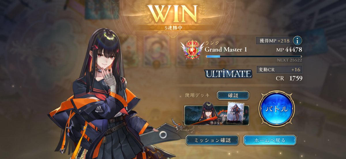 テンポエルフで5連勝してULTIMATE到達!! 虫風花やっぱり強いな レート1200からBEYOND目指す配信してるから良かったら見に来てね! https://t.co/WU9vM813Z4 #シャドバ #エルフ