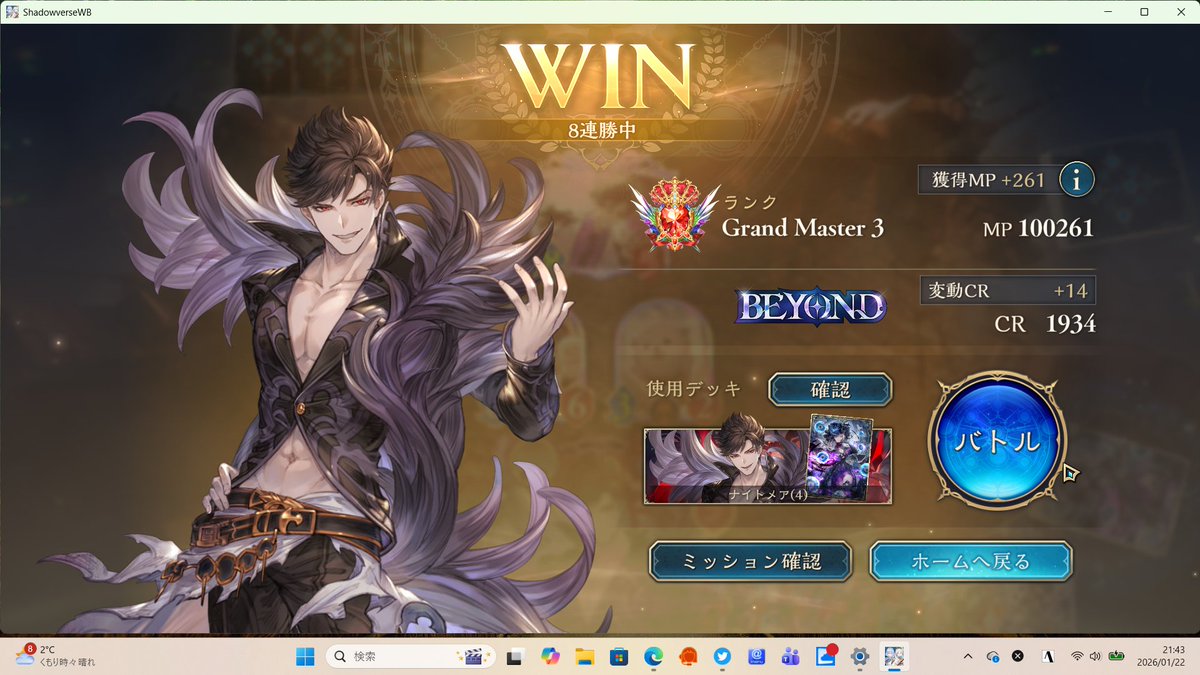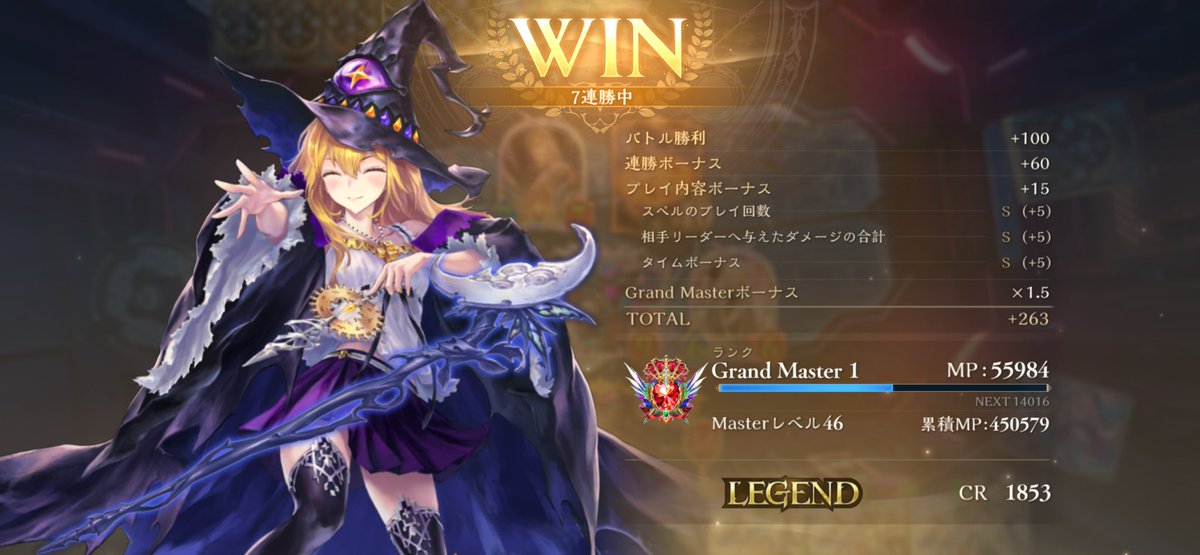アグロイでグラマス2達成!道中レジェンド達成&6連勝までは行けました、CR下がったけど 2602 14 02 シャドバ(シャドビヨ MP63000~)