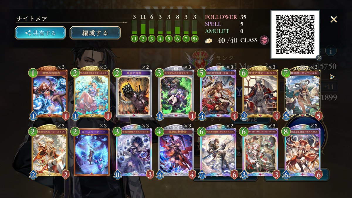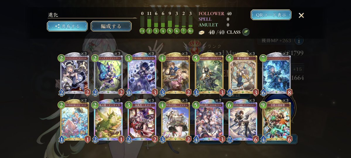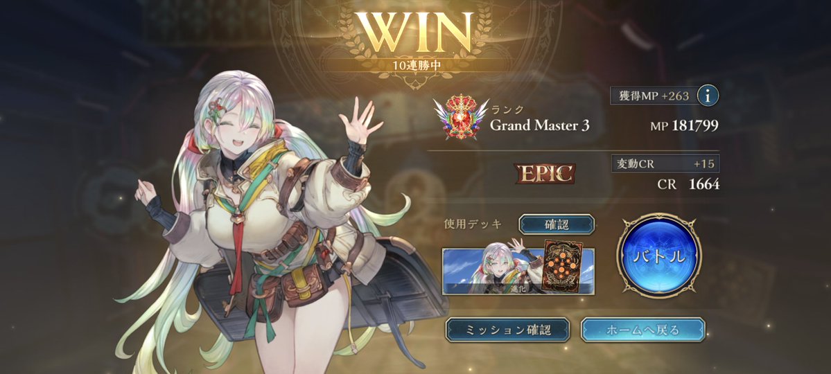 さらいすさん(@irs92452190)の進化エルフの構築でエルフも10連勝でEPIC復帰 見栄えがいいからもうEPICから下がりたくなくてランク回したくなくなるw #シャドバビヨンド #シャドバ