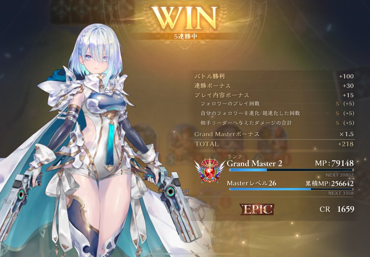 シャークソルジャー入りの疾走ランプドラゴンで10連勝〜! 相手が警戒して守護張っても貫通するのが偉過ぎる笑 レート200くらい落として構築変えてのだからエピック以下なのはお許しを。 #シャドバWB #シャドバビヨンド #シャドウバース #シャドバ