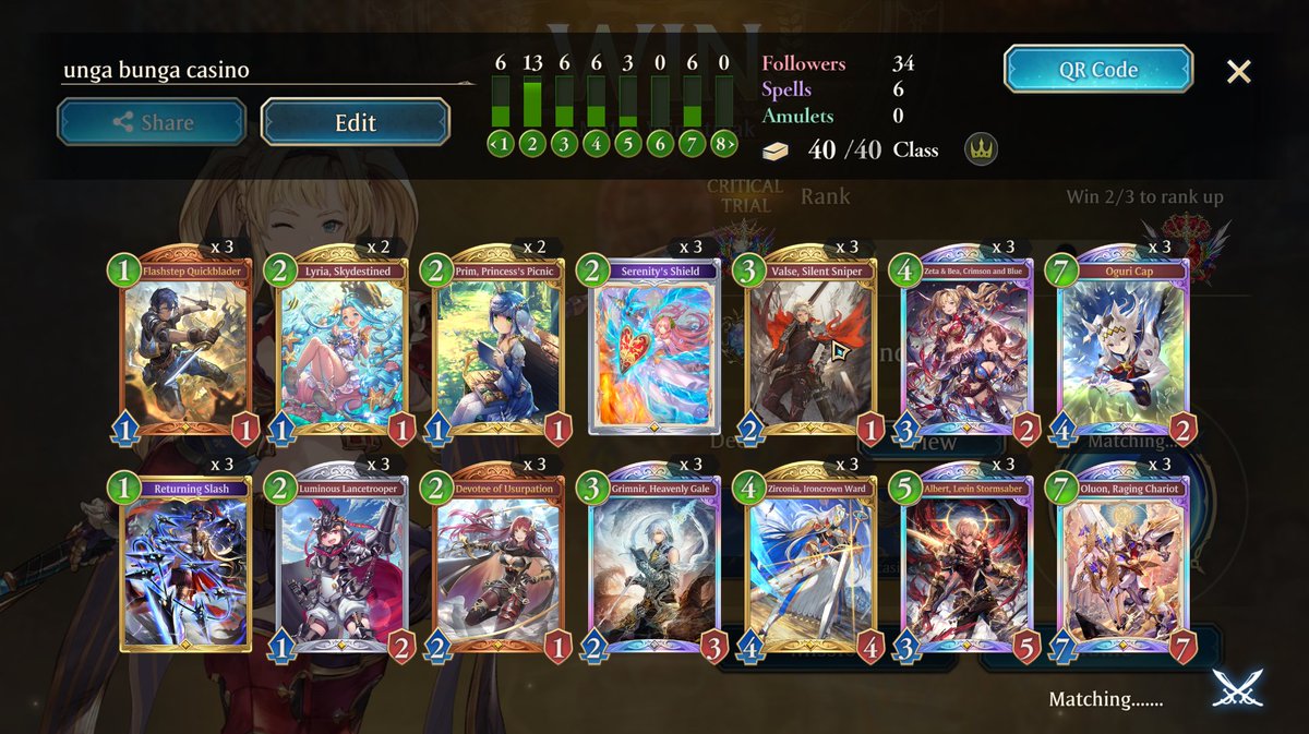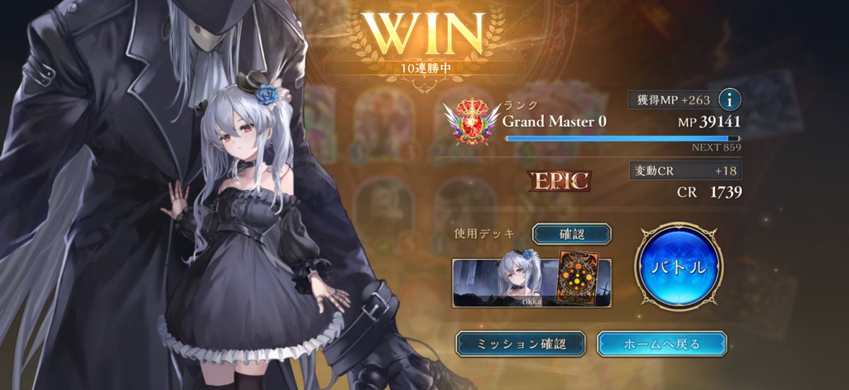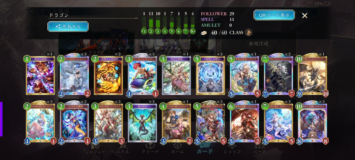 遂に10連勝来たああああ(ドラゴンは7連勝) 手札事故が少ないしドロソ多くて個人的に好きなデッキ ドラゴンのデッキはリグゼさんから借りてきました #シャドバWB #シャドバ勢と繋がりたい