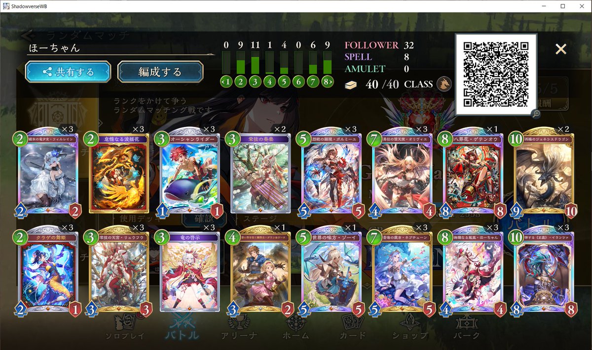 秘術ウィッチ10連勝達成! まだちょいレート低いけどかなり勝率高い リストこんな感じでキティトリック抜いて好きなの入れて良いと思います ライオ2枚目が欲しいかな ピン刺しのエレメンタルガバナー終盤の進化権切れたあとにガチでつよいからおすすめです まだ母数少ないけどやばデッキ #シャドバWB