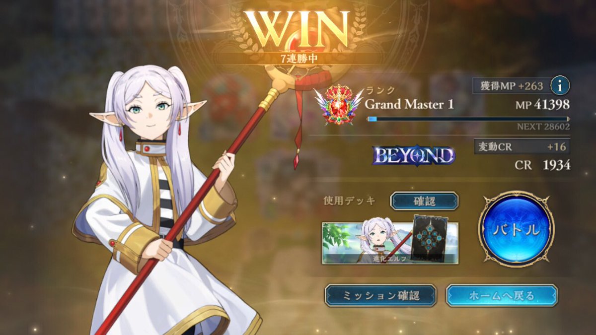 進化エルフビヨンド帯7連勝!! もうこのリストから減らしたいカードがないから固定感ある 不殺の団結者、船頭が上位デッキたちにあまりにも強い! プレイもそこまで難しくないし楽しいからエルフ触ってみたい人にはみんなおすすめできる #シャドバWB #連勝 #BEYOND