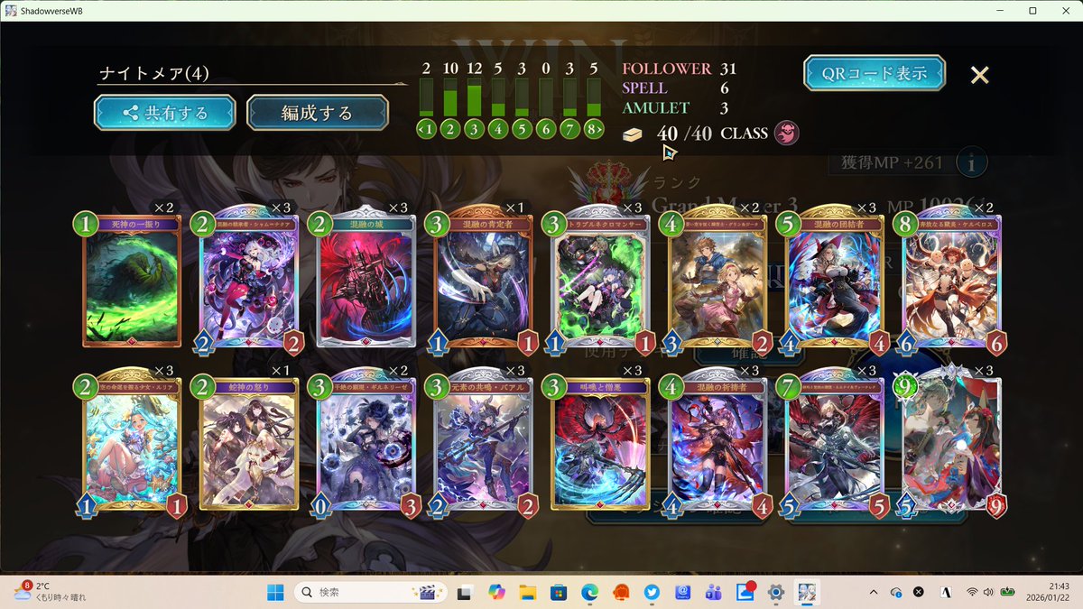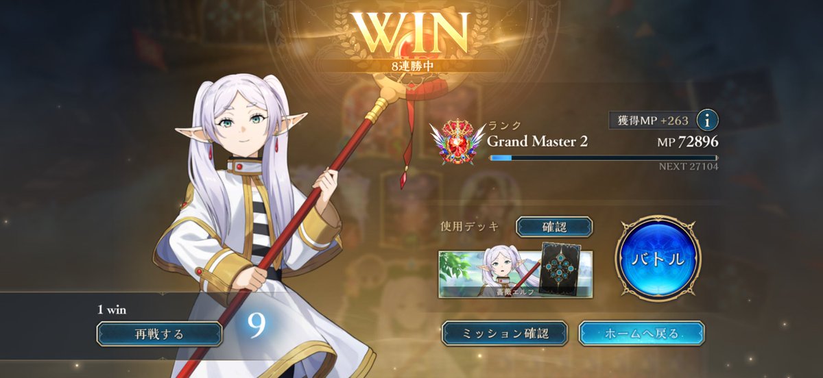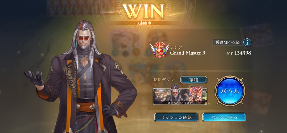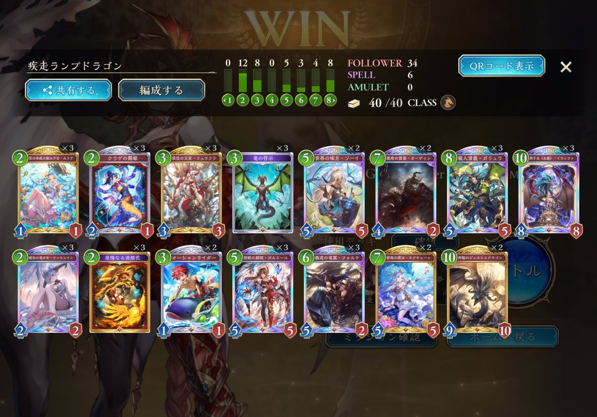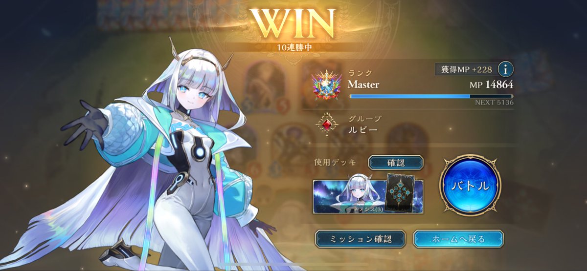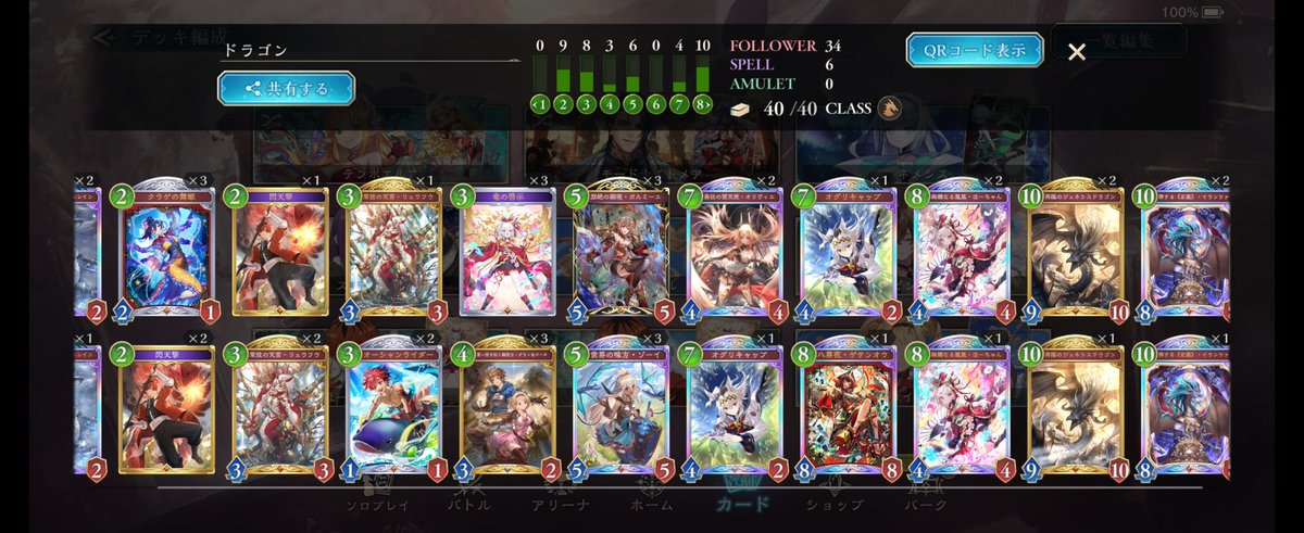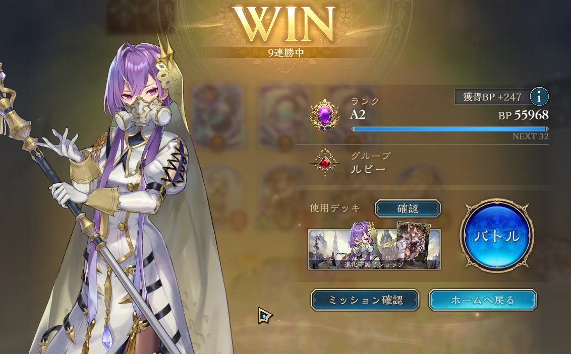 シャドバWB、昨日までのアグロから今度は進化軸のドラゴンに変えて遊んでた。デッキもプレイもなかなか定まらずしばらく負け越した後にだけど、8連勝できた✌️ イシュミールがイマリ、ツヴァイ、オルカいっぱい並べるやつ等あっさり返せていい感じ。pp最大値10での自動進化も助かる