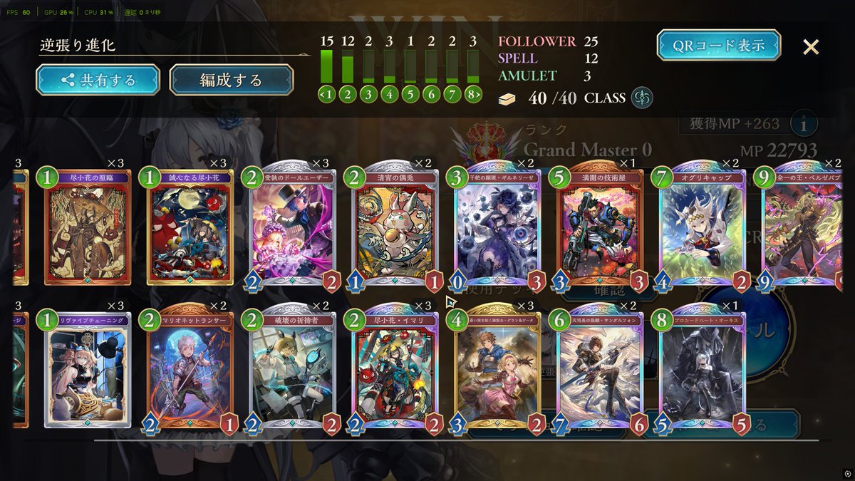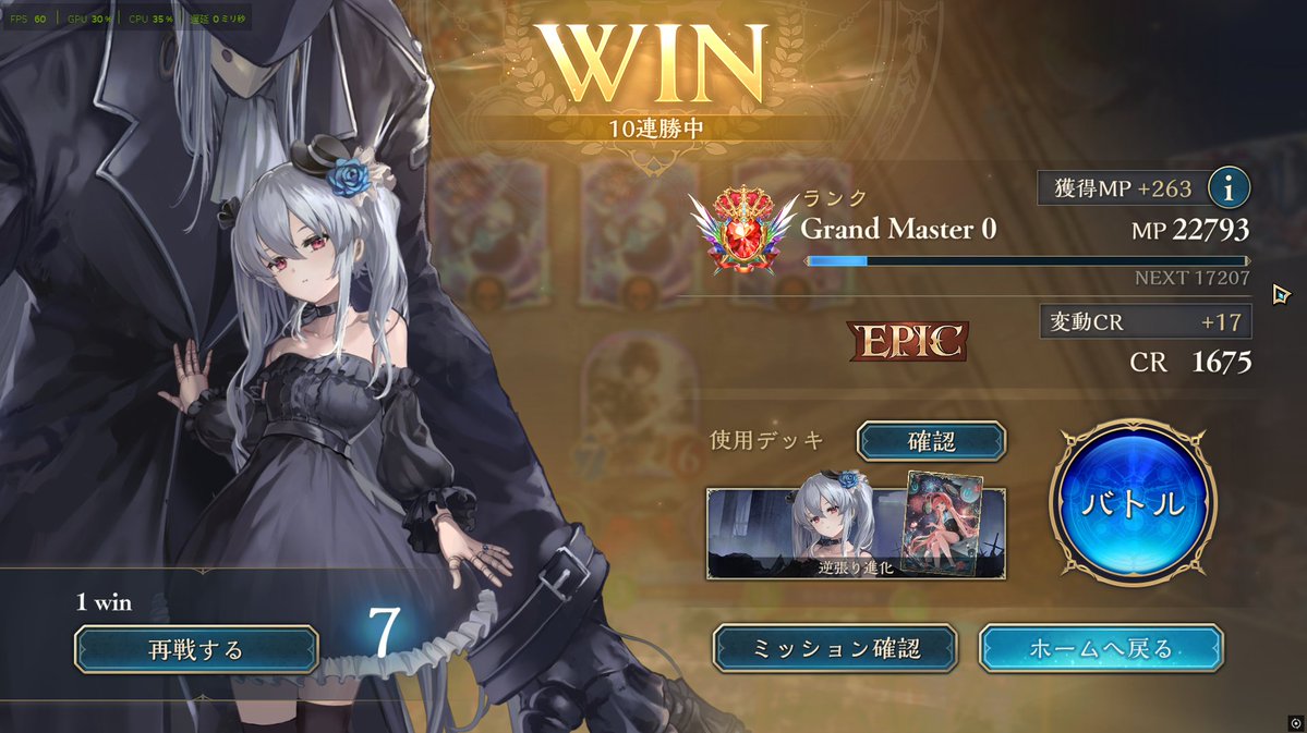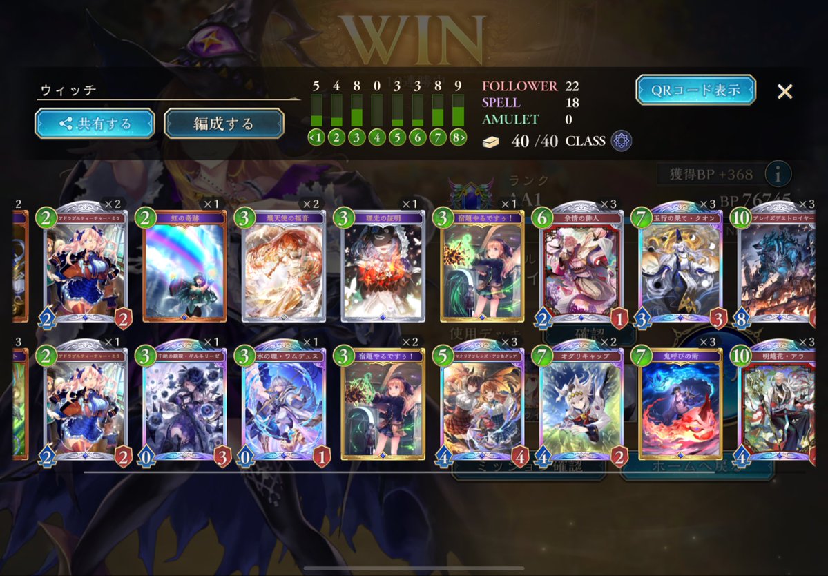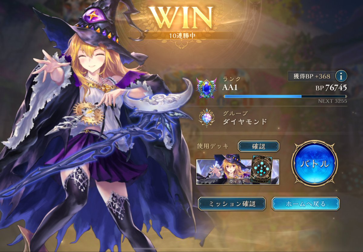 グループダイヤモンドで スペルウィッチ10連勝できた AA1帯だけど お気に入りはピン刺しのワムとギルネ 中盤でムキムキ💪ワムちゃん投げると 一応5連勝1負け10連勝で勝率もいい感じ #シャドバ #ビヨンド #シャドバWB
