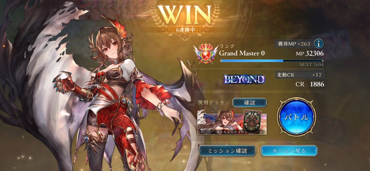 ほーちゃんドラゴンで10連勝した後 1負けでその後6連勝でBEYOND! 波揺花の断裁3枚積むのが個人的なブーム