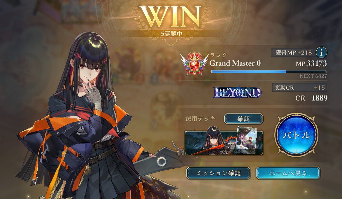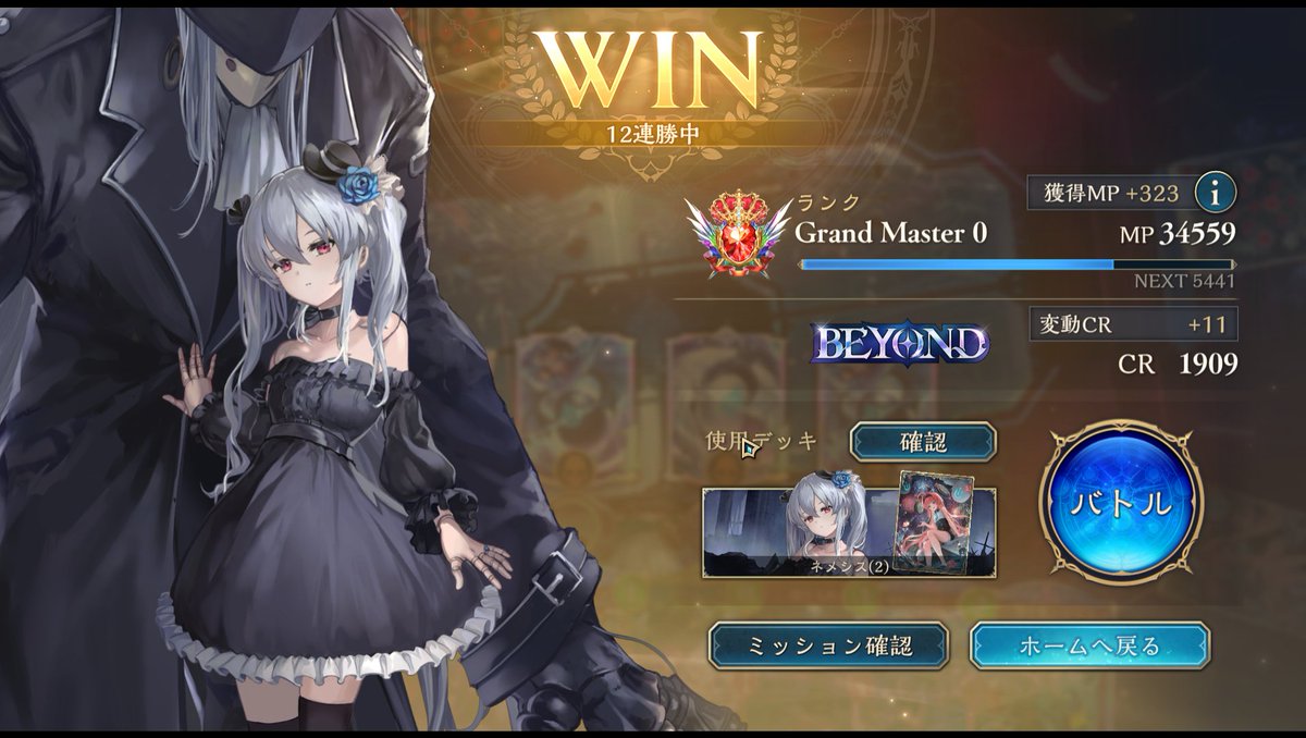 破壊ネメシスで5連勝してBEYOND到達! リストはめっちゃ普通 #シャドバWB