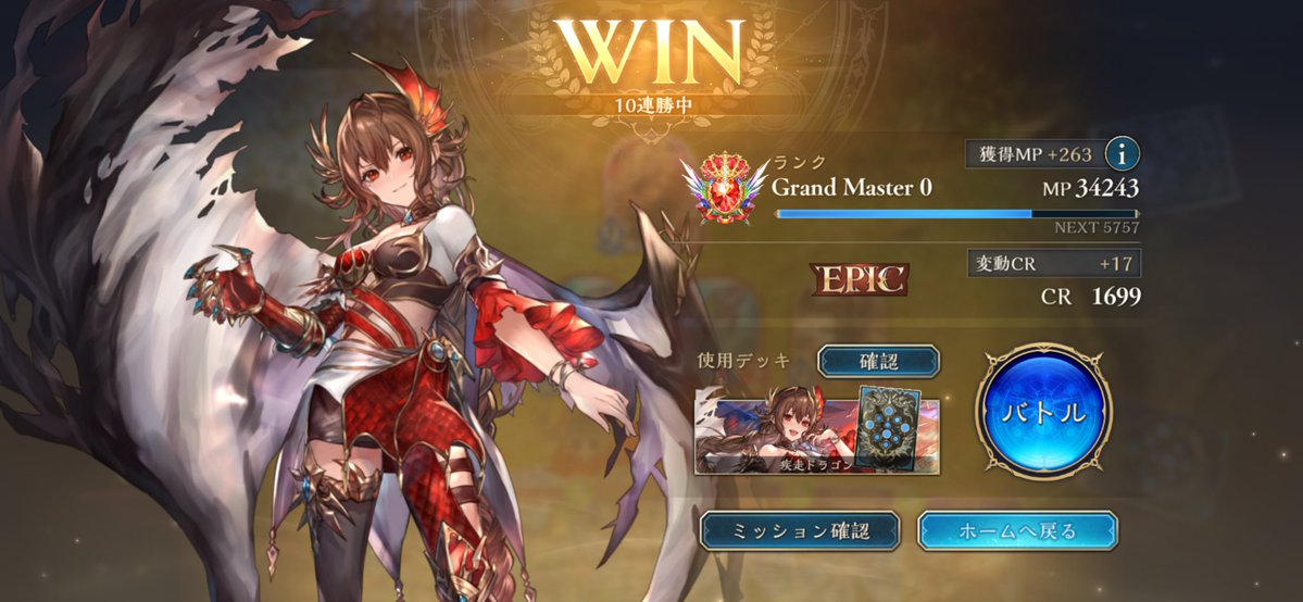 【シャドバWBの話】 疾走ランプドラゴンで10連勝できたー 7コス~9コスで処理だけになって顔つめれなくて失速するイメージあるのでアジュラフリート採用しようかなって思ったりしてる