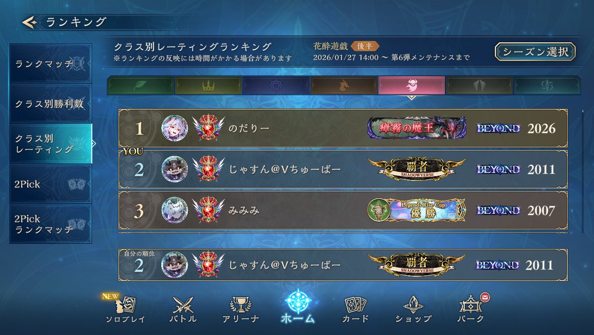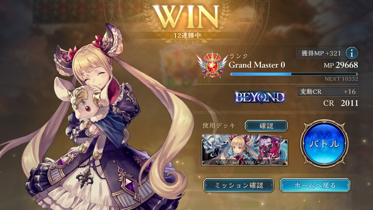 12連勝でCR2000でネクロ2位(*´ω`*) なおこのあとロビー大会でぼろ負けしました(。-∀-) まぁロックしてきた破壊ネメに捕食ギルネでわからせたので良し🐱 やっぱ環境が煮詰まってくると捕食かサンダルの奇襲強い #シャドバ連勝 #ShadowverseWB