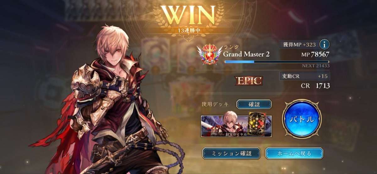 6連勝でロイヤルEPIC行けました〜 進化ロイヤルです✨️ とにかく並べて処理漏れたりチクチクしてアルベール圏内に入れてフィニッシュ! ウンケイ超進化強いです💪 リソース確保に除去、アルベールも通しやすくなってかなり良い #シャドバ #シャドバWB