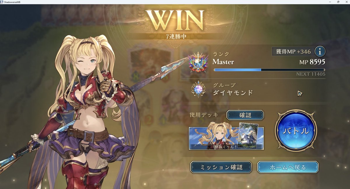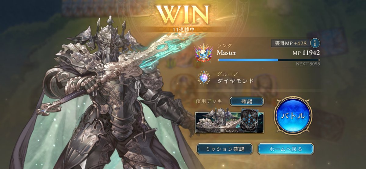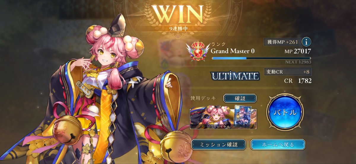 エンハンスロイヤルでマスターダイヤ帯7連勝! 序盤しっかり受け切れればどのクラスにも強いの偉い ワンチャンユリウスの採用とかも面白そう #シャドバWB