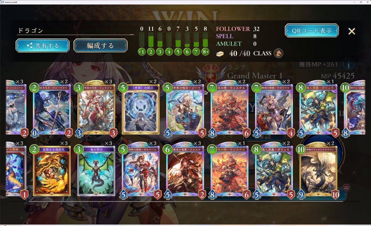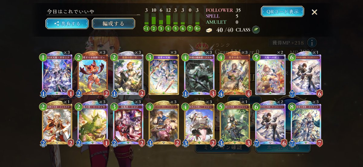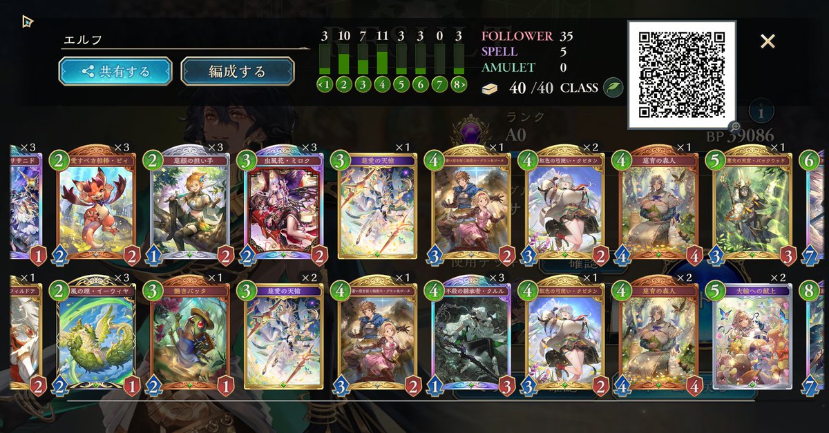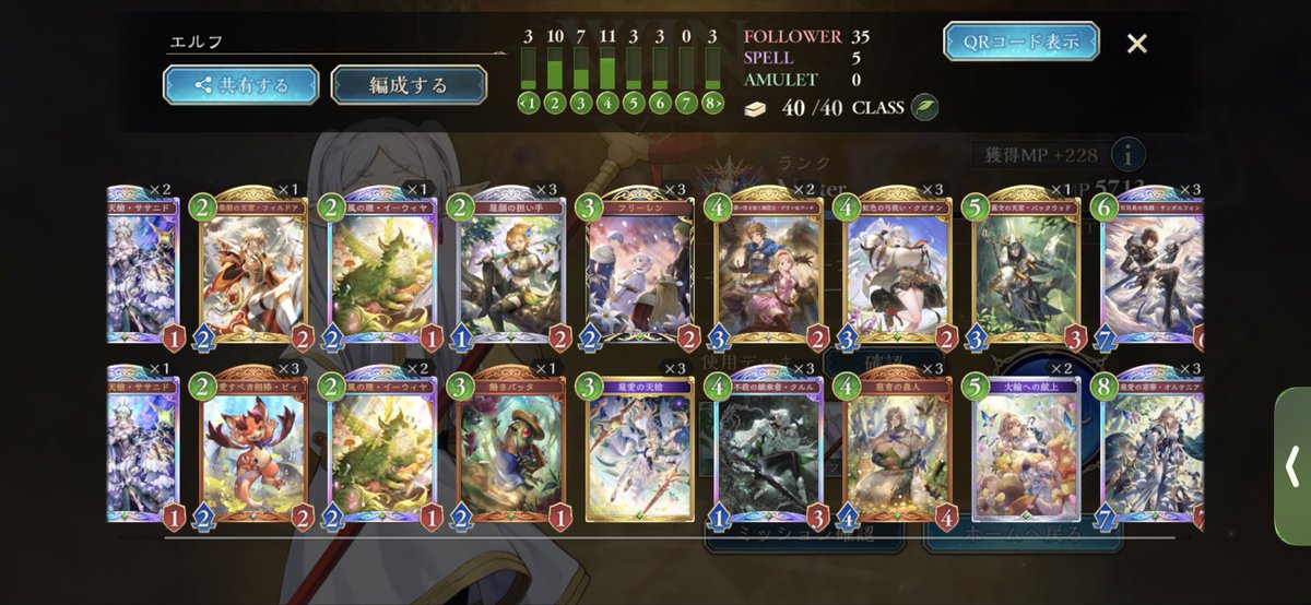 エルフやっとレジェンド踏めました!! 道中6連勝でエピックからアルティメットまでは一瞬だったけどそこから50あげるのが大変でした💦💦 後半のバックウッドが腐りがちでフィルドアの方が使いやすかったです!!クルルは3確定でいいかなと思います😊 #シャドバPS #シャドバWB