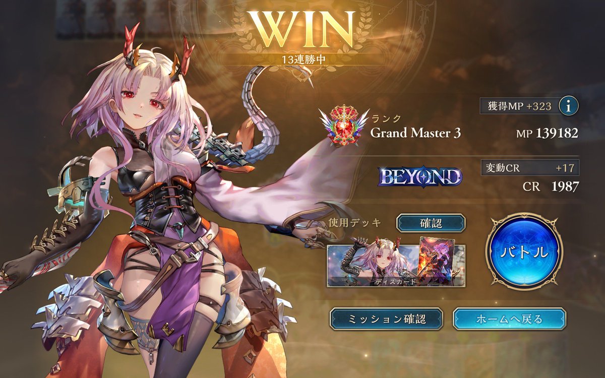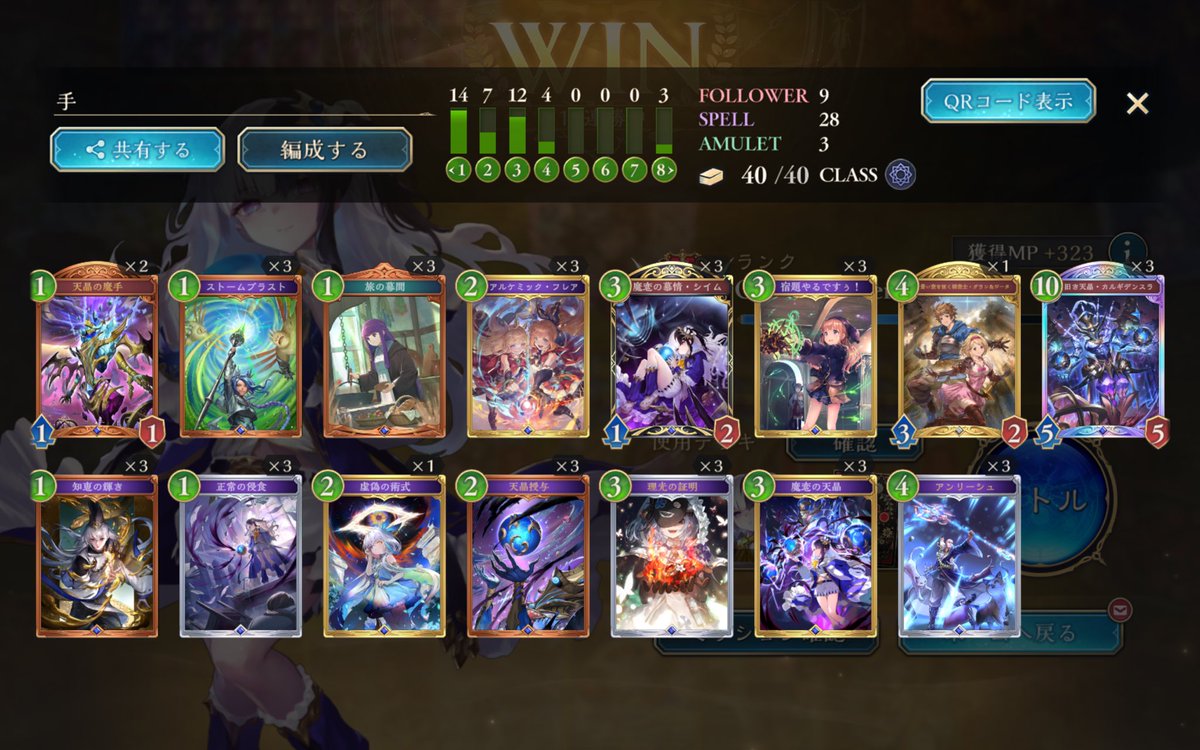 流行りに乗ってダイヤモンド10連勝 2コス横並びさせていくと進化エルフが除去れなくて勝ちます マリガンは卵系がいたらリーシェナ、いなければカミシラ 面広げすぎるとカミシラが通しづらいので超進化ターンまでは卵2個作れてるのが理想