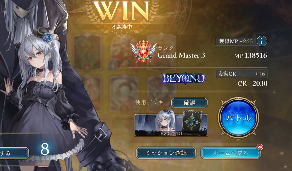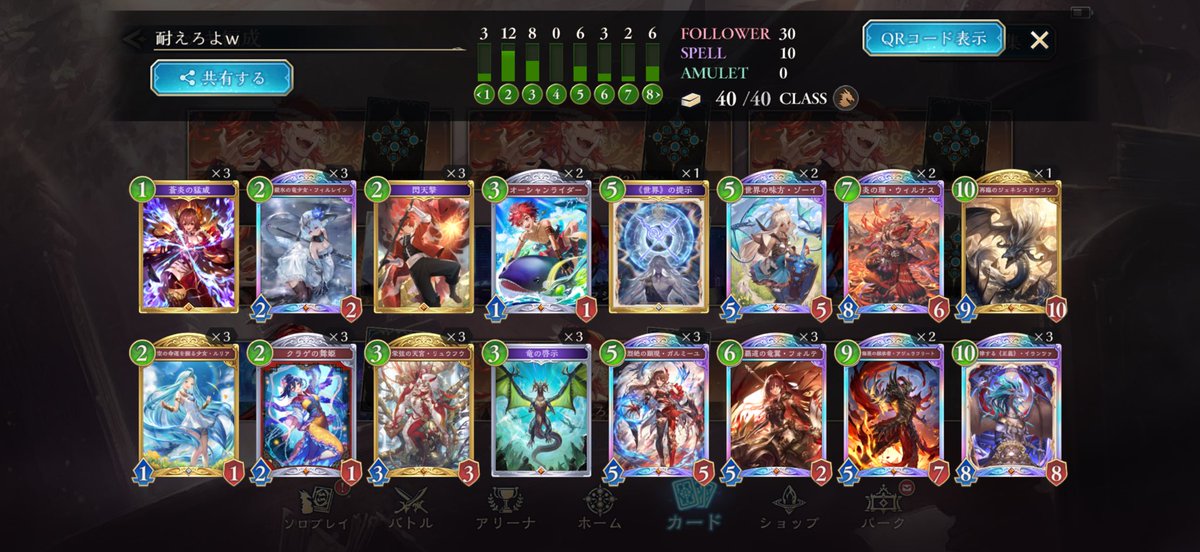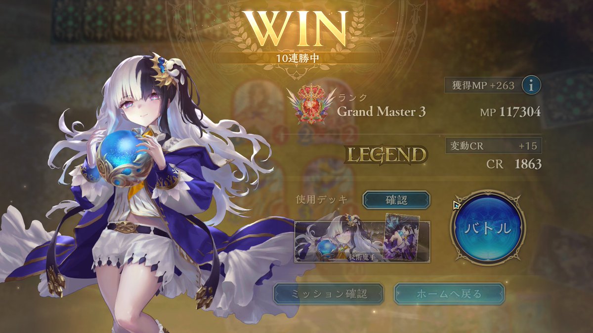 @ryuka302 様の構築をお借りして エピック以下からたった2日で一瞬だけですけどビヨンド到達できました!! ありがとうございました!! 道中10連勝もできて気分いいです!! #シャドバPS