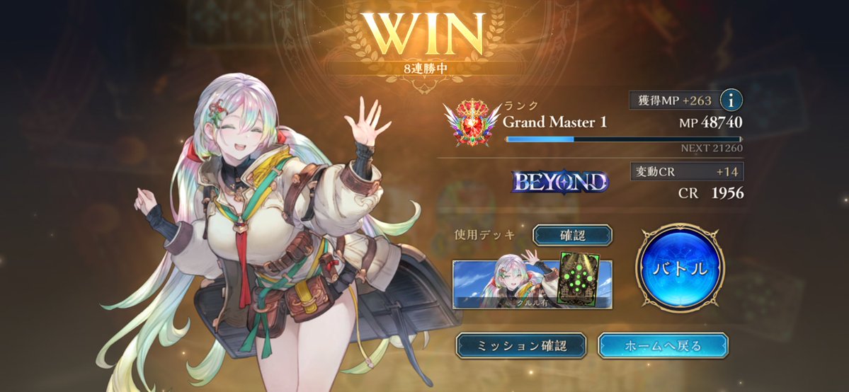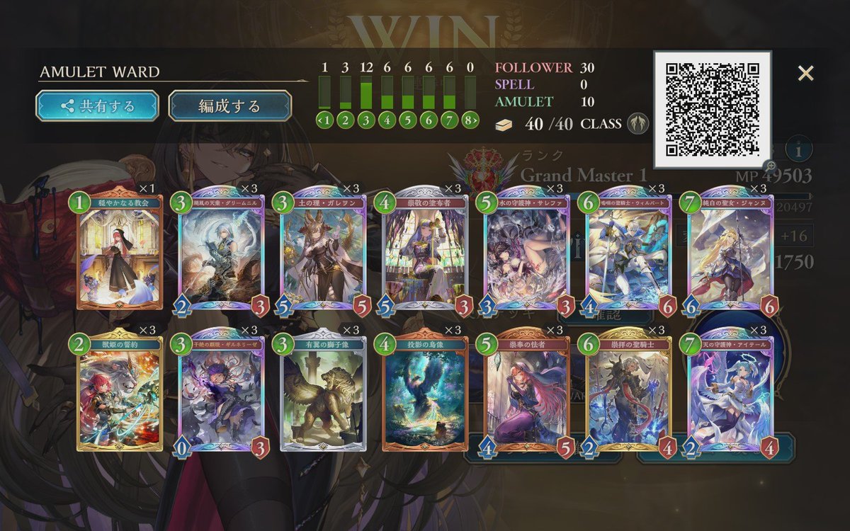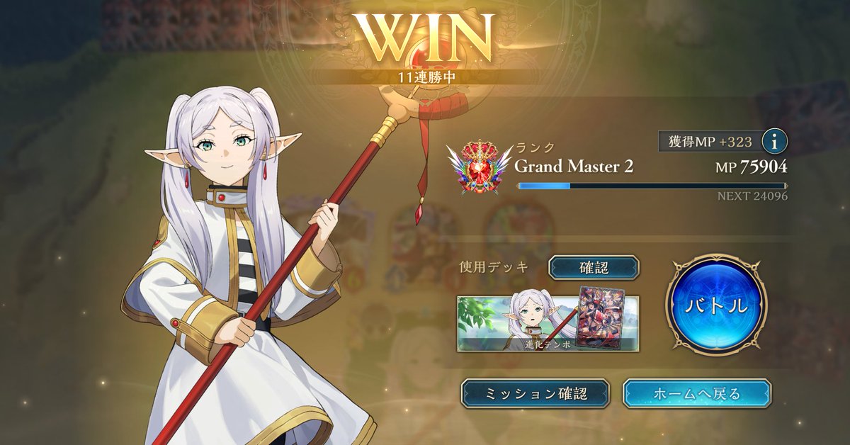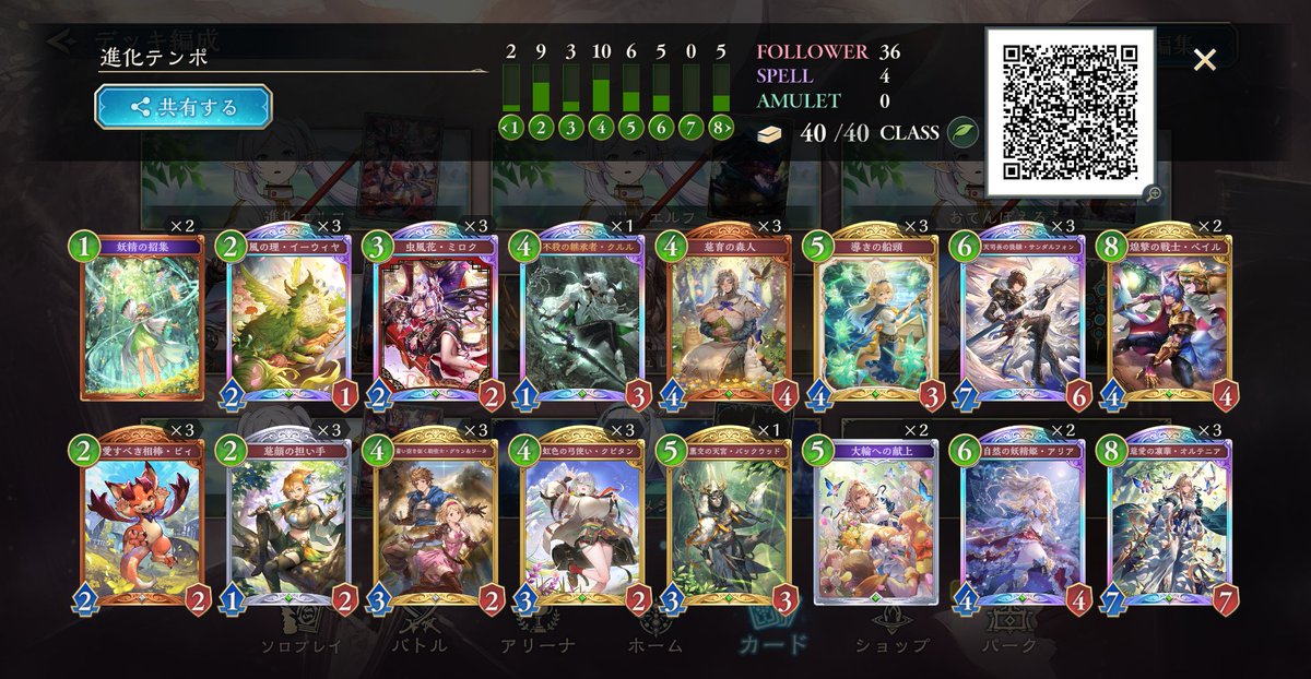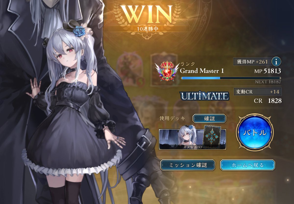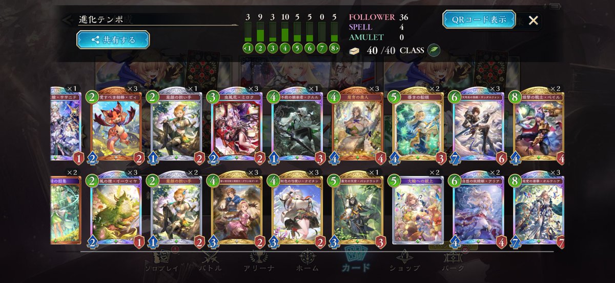 LEGENDに到達してたロイヤルが1500台まで落ちてしまって潜伏OTKロイヤルで10連勝でEPICに舞い戻ってきた( •̀∀•́ ) まだまだ低レートだけど勝てそうだから潜伏ロイヤルでまたLEGENDに戻る! ムササビ倒されてもほかの勝ち筋は沢山あるし1試合の時間も短めで◎ #シャドバWB #シャドウバース