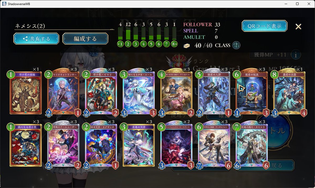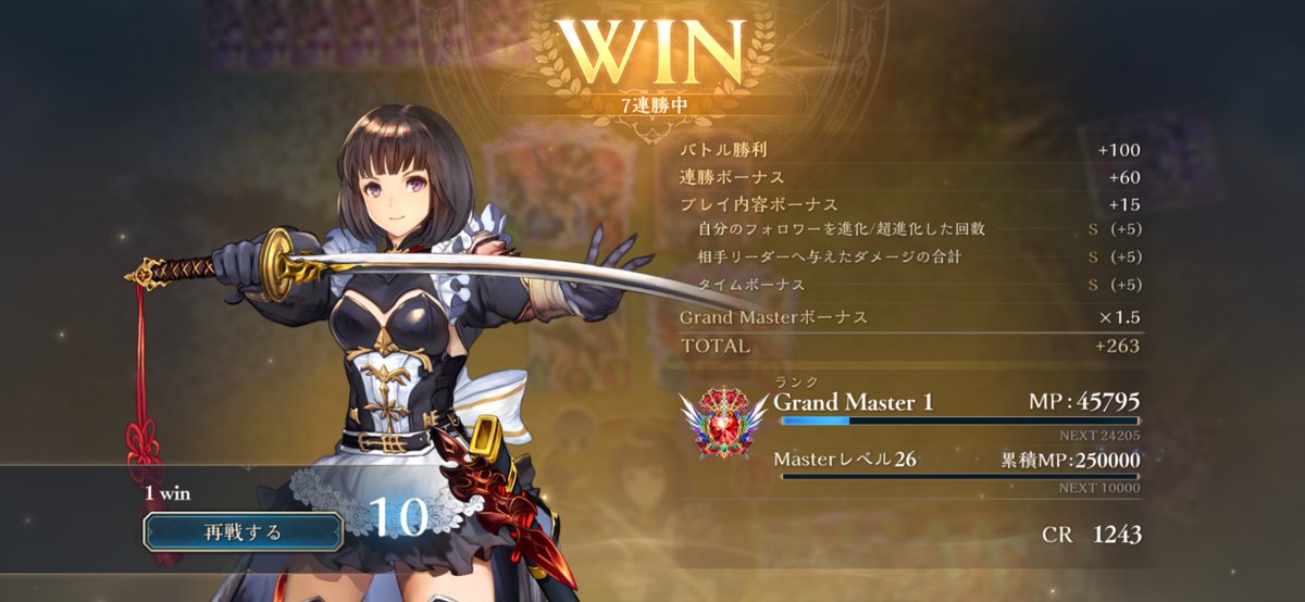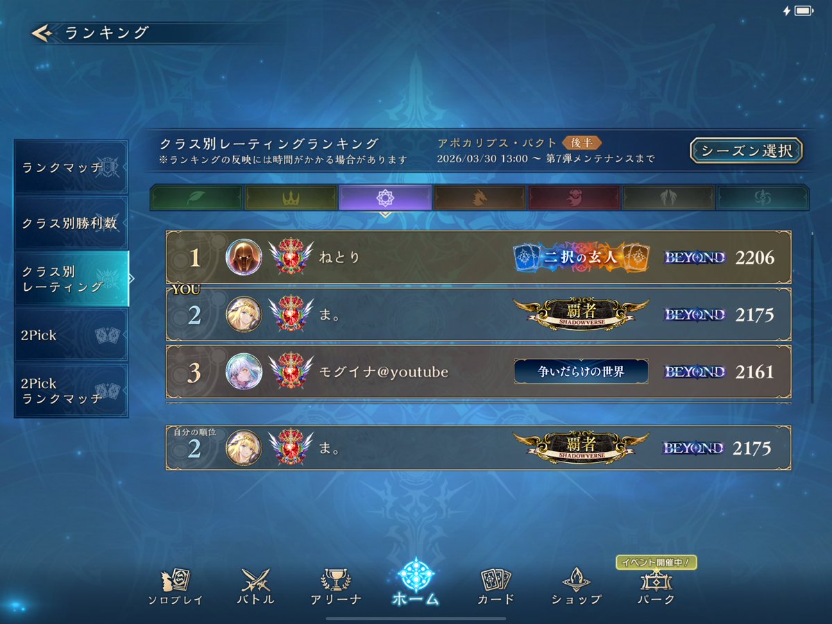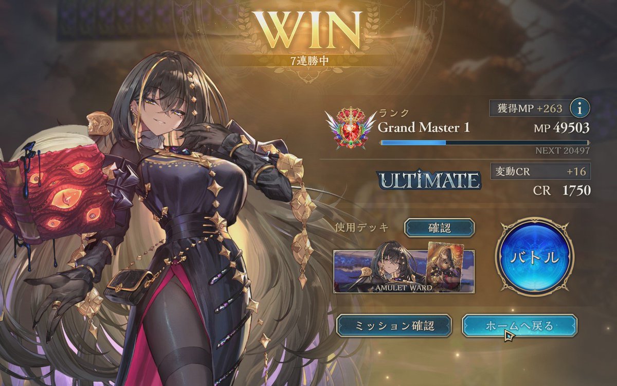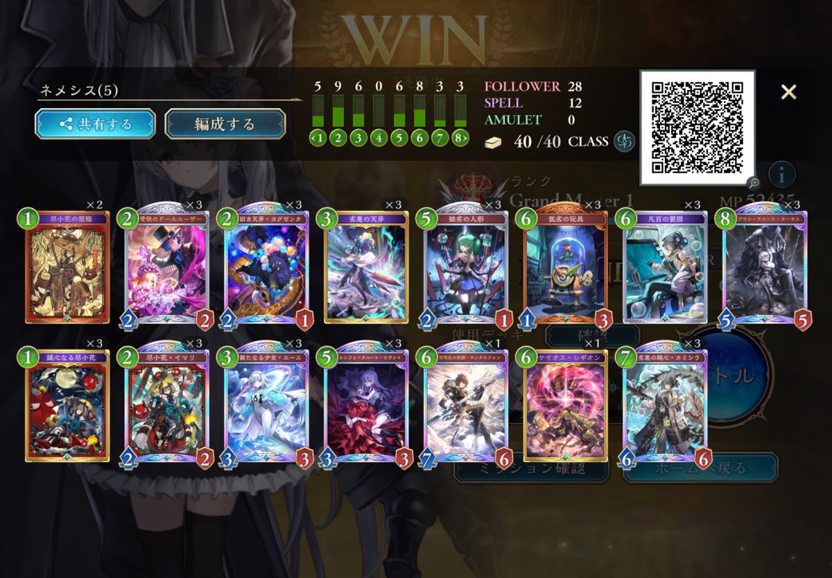 LEGENDに到達してたロイヤルが1500台まで落ちてしまって潜伏OTKロイヤルで10連勝でEPICに舞い戻ってきた( •̀∀•́ ) まだまだ低レートだけど勝てそうだから潜伏ロイヤルでまたLEGENDに戻る! ムササビ倒されてもほかの勝ち筋は沢山あるし1試合の時間も短めで◎ #シャドバWB #シャドウバース