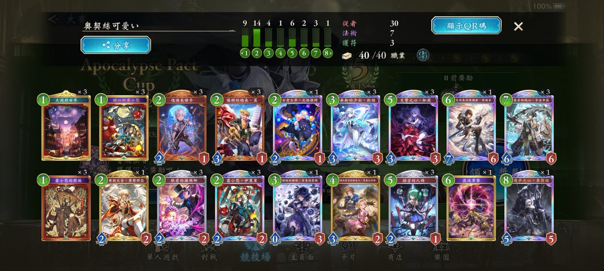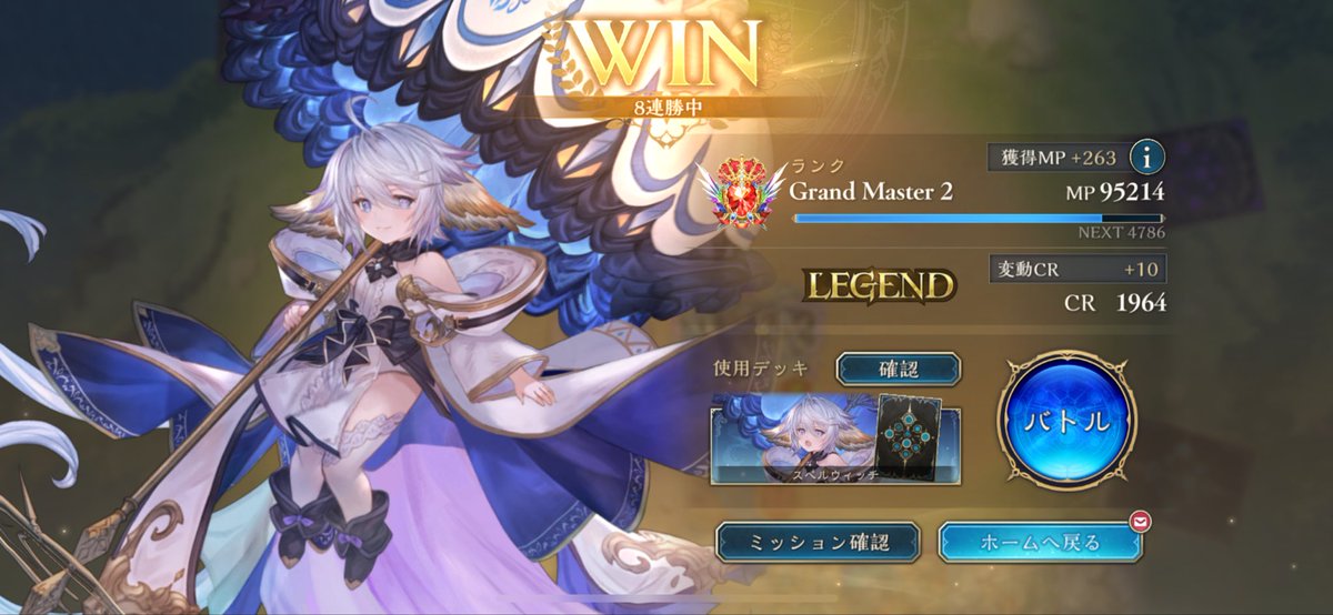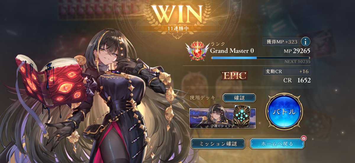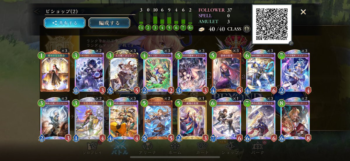 守護ビショップ 9連勝でBEYOND到達 流行りのOTK魔手ウィッチに強く出られて、かつ環境トップのミルティオNiにも勝ちやすいのが評価高め 崇奉の怯者のカードパワーが高すぎるおかげで、ウィルバートorアイテールのどちらかが欠損しても勝ち切れる試合が多いのが感触良かったです👏 #シャドバPS