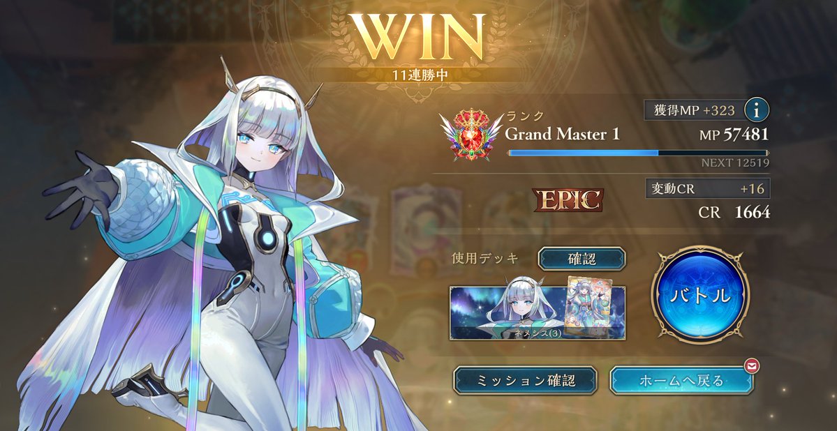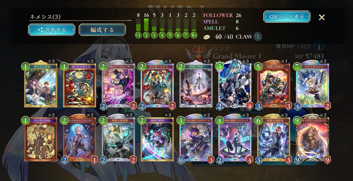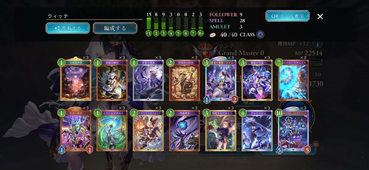 なんかフォロワー全入れ天晶ウィッチで10連勝したぞ!強いかはさておき信仰たまって楽しいからおすすめ ハンド次第でアグロ目に行くのも大事な気がする! #シャドバ #シャドバWB