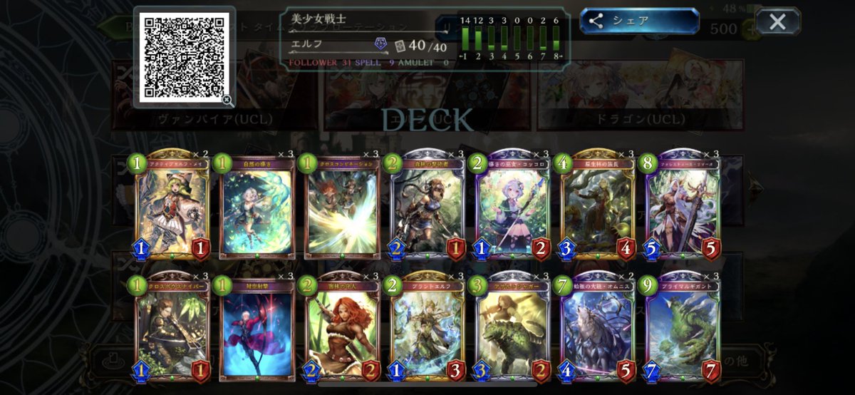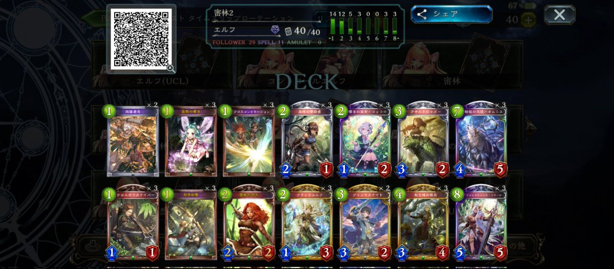 密林エルフで9連勝。 普通にアグロチックで使うとまあまあやれた印象 ちなみにこのあと昇格戦で負けました #シャドウバース #シャドバ
