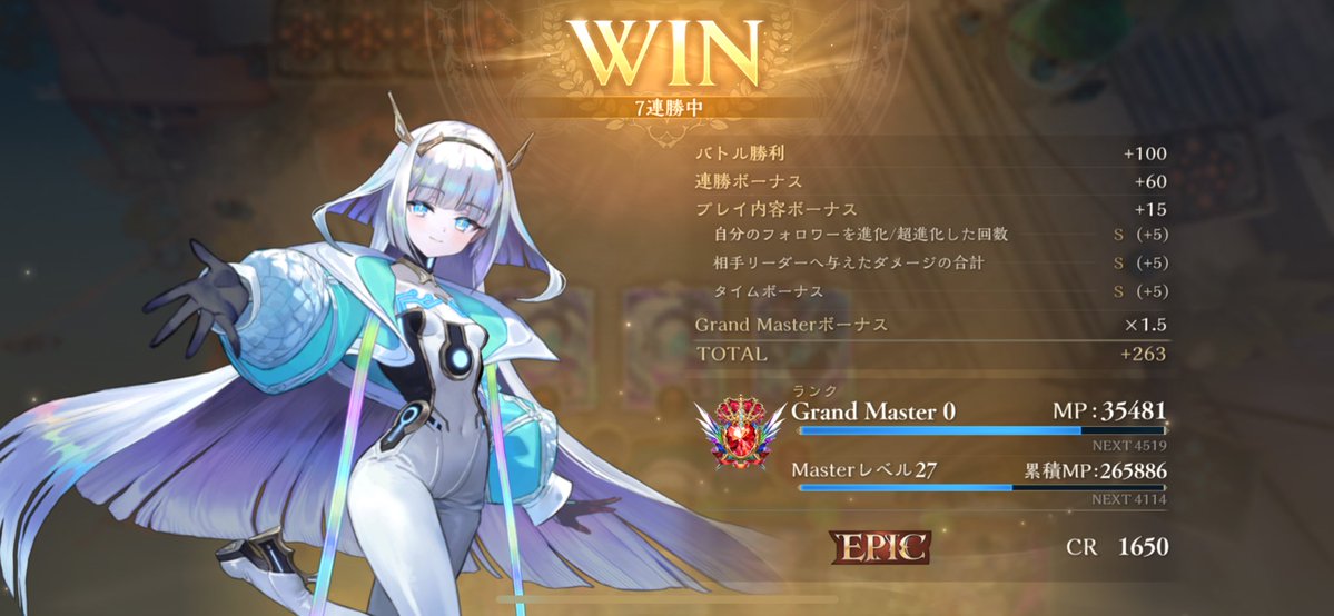 今期初の10連勝&EPIC突入です😆😆女装界隈で1番のシャドバプレイヤー目指して頑張るで〜🥰🥰デッキはテンプレ破壊ネメシスだす〜(◍•ᴗ•◍) #シャドバ #シャドバWB #シャドバ好きと繋がりたい #掲載されるかな?