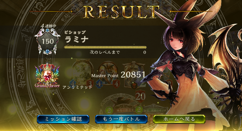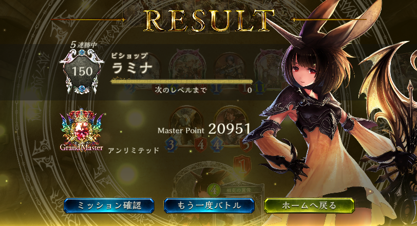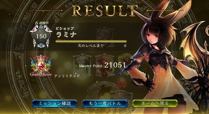 アンリミテッド、疾走ビショップ、6連勝ストップ ダークネスエボルヴ時代に流行った疾走ビショは自然カードの追加で強化されてまだ戦えると思ってます 最後は対ドロシーウィッチ戦で虹の輝きを連打されて負けました