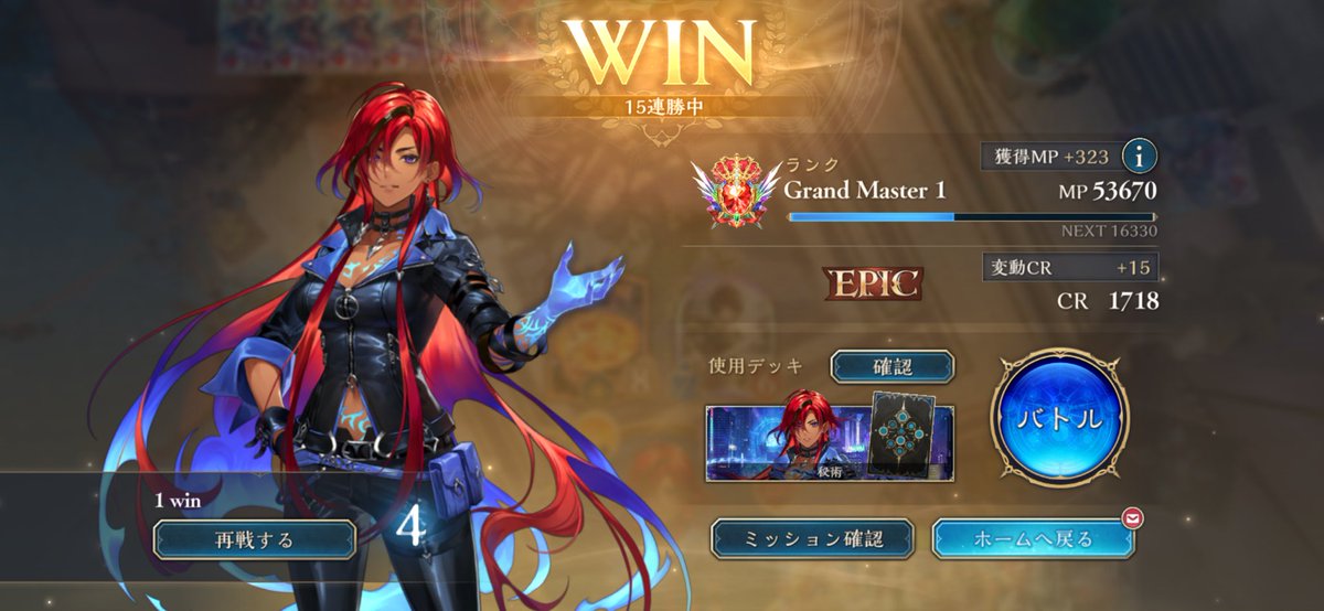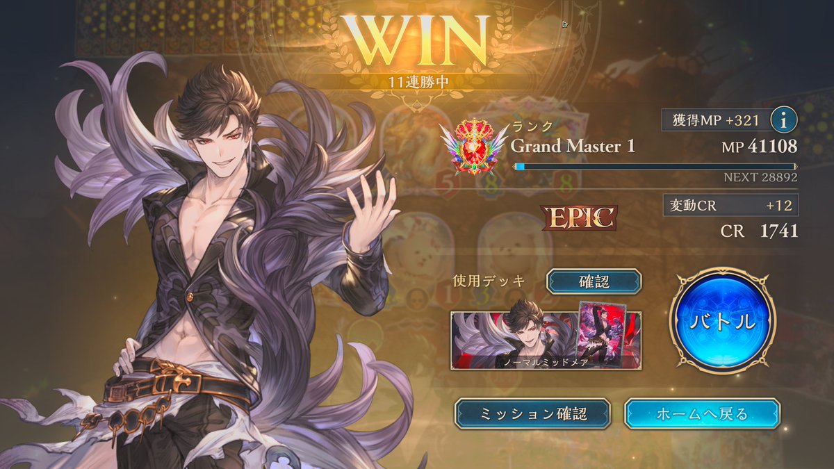 モードナイトメアで7連勝、LEGEND達成! サンダルフォン入れてからかなりいい感じ〜 引用したポストの件、まだまだ募集中です リプかDMで気軽に連絡しちゃってください! #シャドバ #シャドバWB #シャドバフレンド募集